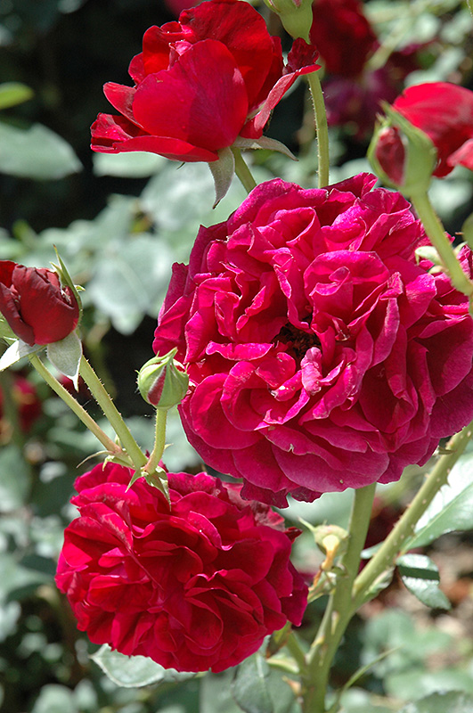Hardiness Zone: 4b Group/Class: Austin Rose Description: An outstanding rose with rich fully double wine-burgundy flowers that accentuate the medium green foliage; a relatively compact plant, blooms all season long once established; needs full sun and well-drained soil Ornamental Features Tradescant Rose is clothed in stunning fragrant fully double burgundy flowers at the ends of the branches from late spring to early fall. The flowers are excellent for cutting. It has green deciduous foliage. The glossy oval compound leaves do not develop any appreciable fall color. Landscape Attributes Tradescant Rose is a multi-stemmed deciduous shrub with an upright spreading habit of growth. Its average texture blends into the landscape, but can be balanced by one or two finer or coarser trees or shrubs for an effective composition. This is a high maintenance shrub that will require regular care and upkeep, and is best pruned in late winter once the threat of extreme cold has passed. Gardeners should be aware of the following characteristic(s) that may warrant special consideration; Tradescant Rose is recommended for the following landscape applications; Planting & Growing Tradescant Rose will grow to be about 6 feet tall at maturity, with a spread of 5 feet. It tends to fill out right to the ground and therefore doesn't necessarily require facer plants in front, and is suitable for planting under power lines. It grows at a fast rate, and under ideal conditions can be expected to live for approximately 20 years. This shrub should only be grown in full sunlight. It does best in average to evenly moist conditions, but will not tolerate standing water. It is not particular as to soil type or pH. It is highly tolerant of urban pollution and will even thrive in inner city environments. This particular variety is an interspecific hybrid.