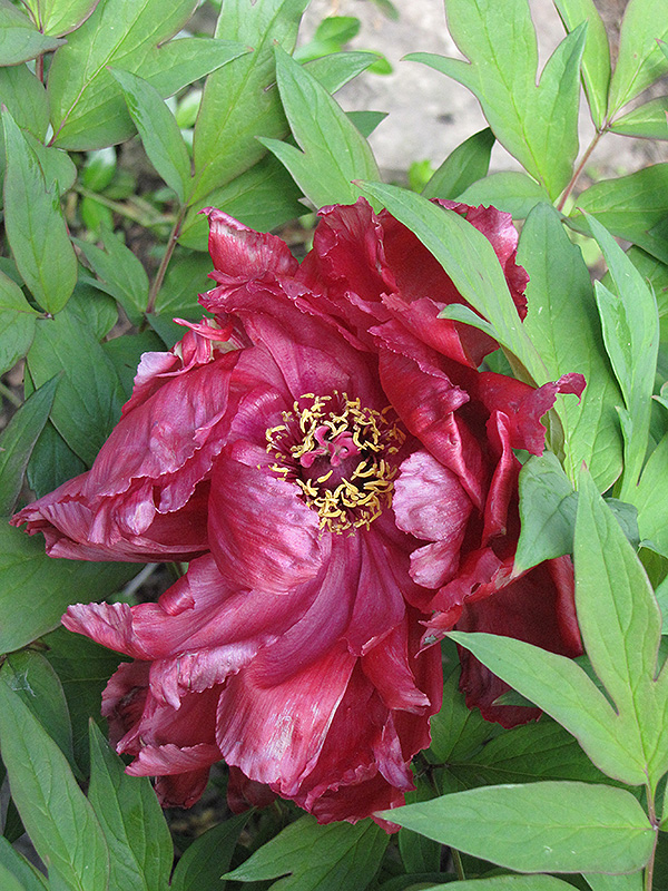 Hardiness Zone: 4a Description: A beautiful woody peony for the garden, with captivating dark maroon blooms with yellow stamens, great as an accent in the garden or massed in borders; unlike perennial peonies, remember not to prune this variety Ornamental Features Koukamon Tree Peony features bold lightly-scented double burgundy flowers with yellow eyes at the ends of the branches from mid to late spring. The flowers are excellent for cutting. It has attractive light green deciduous foliage. The narrow compound leaves are highly ornamental but do not develop any appreciable fall color. Landscape Attributes Koukamon Tree Peony is a multi-stemmed deciduous shrub with an upright spreading habit of growth. Its relatively fine texture sets it apart from other landscape plants with less refined foliage. This is a relatively low maintenance shrub, and should not require much pruning, except when necessary, such as to remove dieback. It is a good choice for attracting butterflies to your yard, but is not particularly attractive to deer who tend to leave it alone in favor of tastier treats. It has no significant negative characteristics. Koukamon Tree Peony is recommended for the following landscape applications; Planting & Growing Koukamon Tree Peony will grow to be about 5 feet tall at maturity, with a spread of 5 feet. It has a low canopy, and is suitable for planting under power lines. It grows at a slow rate, and under ideal conditions can be expected to live for approximately 20 years. This shrub does best in full sun to partial shade. It does best in average to evenly moist conditions, but will not tolerate standing water. It is not particular as to soil pH, but grows best in rich soils. It is quite intolerant of urban pollution, therefore inner city or urban streetside plantings are best avoided. Consider applying a thick mulch around the root zone in winter to protect it in exposed locations or colder microclimates. This is a selected variety of a species not originally from North America.
