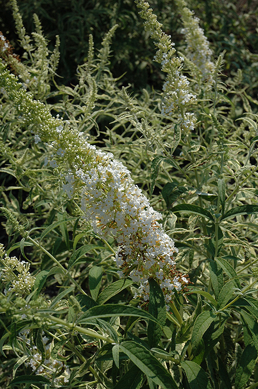 Hardiness Zone: 4b Other Names: Summer Lilac Description: An elegant garden shrub with snowy white flowers in late summer when little else blooms; attracts butterflies; may treat as a perennial and cut it back to the ground each spring as it regrows vigorously and blooms on new wood Ornamental Features White Harlequin Butterfly Bush features showy panicles of fragrant white flowers at the ends of the branches from mid summer to mid fall. The flowers are excellent for cutting. It has creamy white-variegated grayish green foliage. The fuzzy narrow leaves do not develop any appreciable fall color. Landscape Attributes White Harlequin Butterfly Bush is an open multi-stemmed deciduous shrub with an upright spreading habit of growth. Its average texture blends into the landscape, but can be balanced by one or two finer or coarser trees or shrubs for an effective composition. This is a relatively low maintenance shrub, and is best pruned in late winter once the threat of extreme cold has passed. It is a good choice for attracting bees, butterflies and hummingbirds to your yard, but is not particularly attractive to deer who tend to leave it alone in favor of tastier treats. It has no significant negative characteristics. White Harlequin Butterfly Bush is recommended for the following landscape applications; Planting & Growing White Harlequin Butterfly Bush will grow to be about 6 feet tall at maturity, with a spread of 5 feet. It tends to be a little leggy, with a typical clearance of 1 foot from the ground, and is suitable for planting under power lines. It grows at a fast rate, and under ideal conditions can be expected to live for approximately 20 years. This shrub should only be grown in full sunlight. It is very adaptable to both dry and moist locations, and should do just fine under average home landscape conditions. It is not particular as to soil type or pH, and is able to handle environmental salt. It is highly tolerant of urban pollution and will even thrive in inner city environments. Consider applying a thick mulch around the root zone over the growing season to conserve soil moisture. This is a selected variety of a species not originally from North America. White Harlequin Butterfly Bush makes a fine choice for the outdoor landscape, but it is also well-suited for use in outdoor pots and containers. With its upright habit of growth, it is best suited for use as a 'thriller' in the 'spiller-thriller-filler' container combination; plant it near the center of the pot, surrounded by smaller plants and those that spill over the edges. It is even sizeable enough that it can be grown alone in a suitable container. Note that when grown in a container, it may not perform exactly as indicated on the tag - this is to be expected. Also note that when growing plants in outdoor containers and baskets, they may require more frequent waterings than they would in the yard or garden.