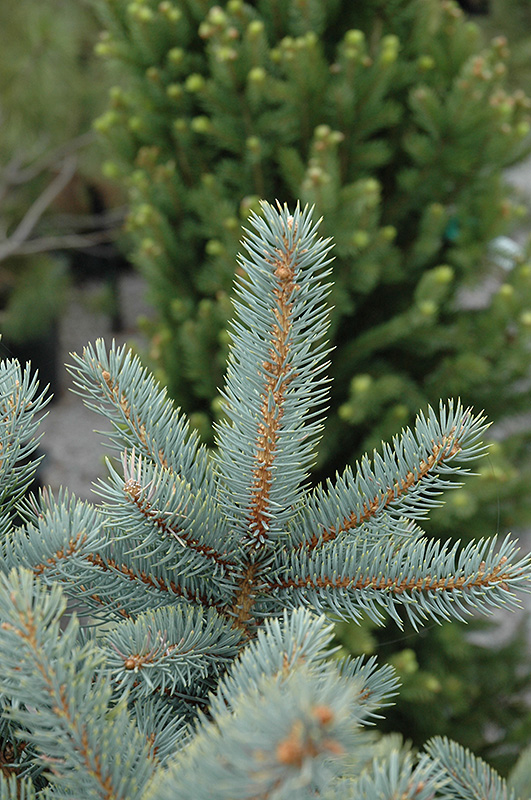 Hardiness Zone: 2a Other Names: Blue Colorado Spruce;Colorado Blue Spruce Description: A shimmering blue evergreen accent tree, pyramidal shaped with large stout branches and elegant silvery-blue needles, a tree of great beauty and color which is retained throughout the year; extremely hardy and rugged Ornamental Features Bakeri Blue Spruce is primarily valued in the landscape for its distinctively pyramidal habit of growth. It has attractive silvery blue evergreen foliage. The needles are highly ornamental and remain silvery blue throughout the winter. The rough gray bark adds an interesting dimension to the landscape. Landscape Attributes Bakeri Blue Spruce is a dense evergreen tree with a strong central leader and a distinctive and refined pyramidal form. Its average texture blends into the landscape, but can be balanced by one or two finer or coarser trees or shrubs for an effective composition. This is a relatively low maintenance tree. When pruning is necessary, it is recommended to only trim back the new growth of the current season, other than to remove any dieback. Deer don't particularly care for this plant and will usually leave it alone in favor of tastier treats. It has no significant negative characteristics. Bakeri Blue Spruce is recommended for the following landscape applications; Planting & Growing Bakeri Blue Spruce will grow to be about 30 feet tall at maturity, with a spread of 18 feet. It has a low canopy, and should not be planted underneath power lines. It grows at a slow rate, and under ideal conditions can be expected to live for 80 years or more. This tree should only be grown in full sunlight. It is very adaptable to both dry and moist growing conditions, but will not tolerate any standing water. It is considered to be drought-tolerant, and thus makes an ideal choice for xeriscaping or the moisture-conserving landscape. It is not particular as to soil type or pH, and is able to handle environmental salt. It is highly tolerant of urban pollution and will even thrive in inner city environments. This is a selection of a native North American species.