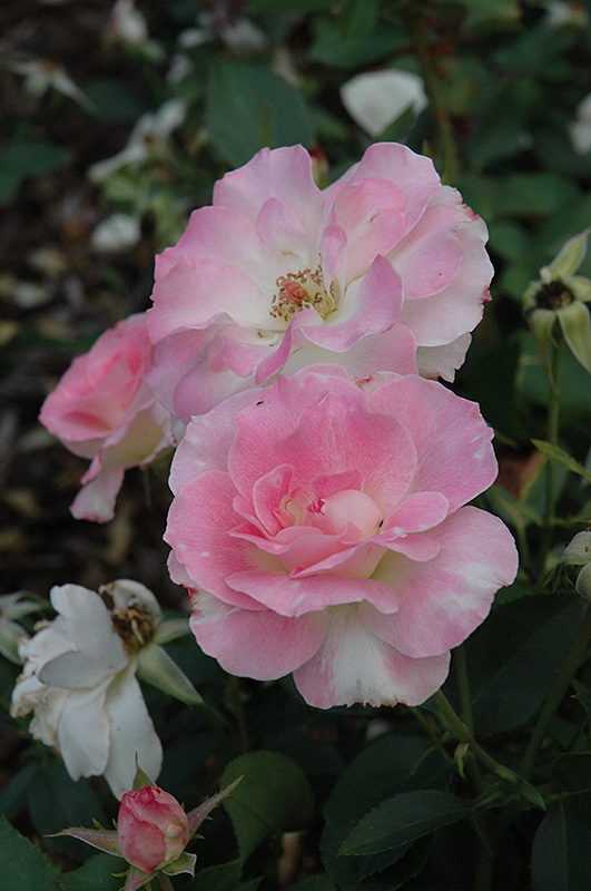 Hardiness Zone: 6a Group/Class: Floribunda Rose Description: Bushy and spreading in form, this floribunda rose produces elegant white blend blooms edged in exciting hot pink, creating tremendous visual impact when massed in the garden; blooms repeat all season long; requires spring freeze protection Ornamental Features Charles Aznavour Rose features showy double white flowers with creamy white overtones and hot pink edges at the ends of the branches from mid spring to mid fall. The flowers are excellent for cutting. It has dark green deciduous foliage. The glossy oval compound leaves do not develop any appreciable fall color. Landscape Attributes Charles Aznavour Rose is a multi-stemmed deciduous shrub with an upright spreading habit of growth. Its average texture blends into the landscape, but can be balanced by one or two finer or coarser trees or shrubs for an effective composition. This is a high maintenance shrub that will require regular care and upkeep, and is best pruned in late winter once the threat of extreme cold has passed. It is a good choice for attracting bees to your yard. Gardeners should be aware of the following characteristic(s) that may warrant special consideration; Charles Aznavour Rose is recommended for the following landscape applications; Planting & Growing Charles Aznavour Rose will grow to be about 3 feet tall at maturity, with a spread of 4 feet. It tends to fill out right to the ground and therefore doesn't necessarily require facer plants in front. It grows at a fast rate, and under ideal conditions can be expected to live for approximately 30 years. This shrub should only be grown in full sunlight. It does best in average to evenly moist conditions, but will not tolerate standing water. It is not particular as to soil type or pH. It is highly tolerant of urban pollution and will even thrive in inner city environments. This particular variety is an interspecific hybrid.