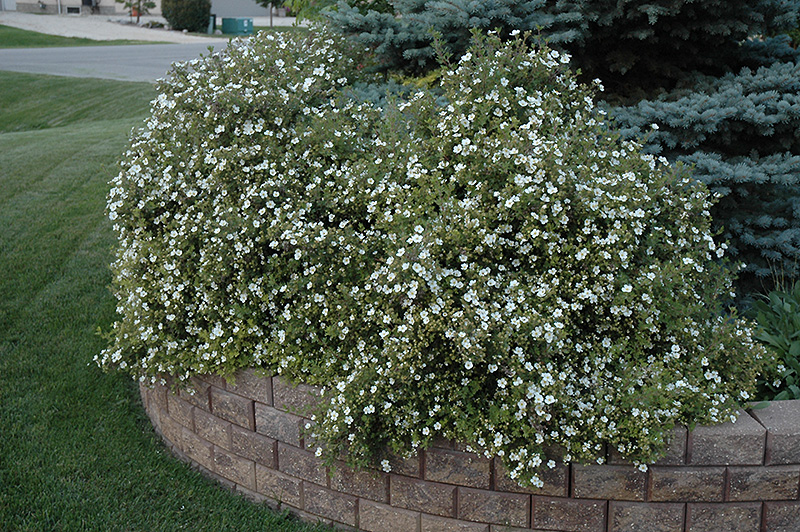 Hardiness Zone: 2a Other Names: Bush Cinquefoil, Shrubby Cinquefoil Description: Considered one of the best white-flowered varieties, this compact mounded shrub is smothered in snow-white flowers from June until frost and fine textured bluish-green foliage; hardy, tough and adaptable to all conditions, but dislikes wet soils Ornamental Features Abbotswood Potentilla has white flowers at the ends of the branches from late spring to early fall. It has bluish-green deciduous foliage. The small ferny compound leaves do not develop any appreciable fall color. Landscape Attributes Abbotswood Potentilla is a dense multi-stemmed deciduous shrub with a more or less rounded form. Its relatively fine texture sets it apart from other landscape plants with less refined foliage. This is a relatively low maintenance shrub, and is best pruned in late winter once the threat of extreme cold has passed. It is a good choice for attracting butterflies to your yard, but is not particularly attractive to deer who tend to leave it alone in favor of tastier treats. It has no significant negative characteristics. Abbotswood Potentilla is recommended for the following landscape applications; Planting & Growing Abbotswood Potentilla will grow to be about 3 feet tall at maturity, with a spread of 3 feet. It tends to fill out right to the ground and therefore doesn't necessarily require facer plants in front. It grows at a slow rate, and under ideal conditions can be expected to live for approximately 30 years. This shrub does best in full sun to partial shade. It is very adaptable to both dry and moist locations, and should do just fine under typical garden conditions. It is considered to be drought-tolerant, and thus makes an ideal choice for a low-water garden or xeriscape application. It is not particular as to soil type or pH. It is highly tolerant of urban pollution and will even thrive in inner city environments. This is a selection of a native North American species.