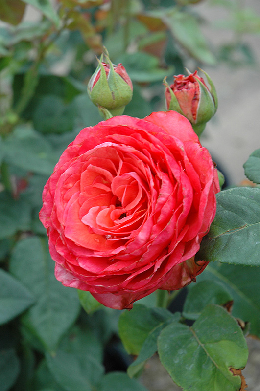 Hardiness Zone: 4b Group/Class: Hybrid Tea Rose Description: A graceful variety that produces gorgeous coral blooms brushed with orange; an unusual and vibrant color; needs full sun and well-drained soil; foliage is dark green with good disease resistance; pleasantly fragrant Ornamental Features Lady Bird Rose features showy fragrant double coral-pink flowers with orange streaks at the ends of the branches from early to late summer. The flowers are excellent for cutting. It has dark green deciduous foliage. The glossy oval compound leaves do not develop any appreciable fall color. Landscape Attributes Lady Bird Rose is a multi-stemmed deciduous shrub with an upright spreading habit of growth. Its average texture blends into the landscape, but can be balanced by one or two finer or coarser trees or shrubs for an effective composition. This is a high maintenance shrub that will require regular care and upkeep, and is best pruned in late winter once the threat of extreme cold has passed. Gardeners should be aware of the following characteristic(s) that may warrant special consideration; Lady Bird Rose is recommended for the following landscape applications; Planting & Growing Lady Bird Rose will grow to be about 5 feet tall at maturity, with a spread of 4 feet. It tends to fill out right to the ground and therefore doesn't necessarily require facer plants in front, and is suitable for planting under power lines. It grows at a fast rate, and under ideal conditions can be expected to live for approximately 20 years. This shrub should only be grown in full sunlight. It does best in average to evenly moist conditions, but will not tolerate standing water. It is not particular as to soil type or pH. It is somewhat tolerant of urban pollution. This particular variety is an interspecific hybrid. Lady Bird Rose makes a fine choice for the outdoor landscape, but it is also well-suited for use in outdoor pots and containers. With its upright habit of growth, it is best suited for use as a 'thriller' in the 'spiller-thriller-filler' container combination; plant it near the center of the pot, surrounded by smaller plants and those that spill over the edges. It is even sizeable enough that it can be grown alone in a suitable container. Note that when grown in a container, it may not perform exactly as indicated on the tag - this is to be expected. Also note that when growing plants in outdoor containers and baskets, they may require more frequent waterings than they would in the yard or garden.