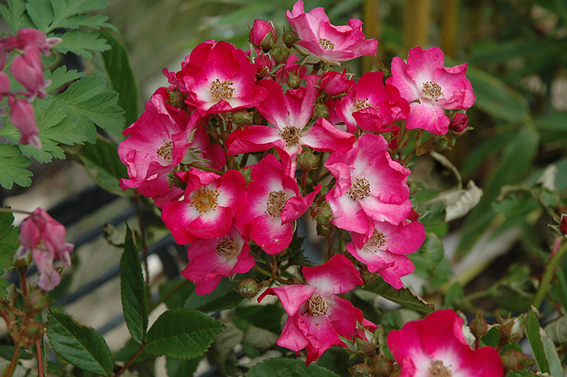 Hardiness Zone: 4a Other Names: Red Ballerina, Red Yesterday Group/Class: Shrub Rose Description: A popular and reliable rose, absolutely covered in masses of medium-sized wine red flowers with prominent white center; all roses need full sun and well-drained soil Ornamental Features Marjorie Fair Rose is blanketed in stunning dark red flowers with white centers at the ends of the branches from late spring to late summer. The flowers are excellent for cutting. It has green deciduous foliage. The glossy oval compound leaves turn yellow in fall. The fruits are showy red hips displayed from early to late fall. Landscape Attributes Marjorie Fair Rose is a multi-stemmed deciduous shrub with a more or less rounded form. Its average texture blends into the landscape, but can be balanced by one or two finer or coarser trees or shrubs for an effective composition. This is a high maintenance shrub that will require regular care and upkeep, and is best pruned in late winter once the threat of extreme cold has passed. Gardeners should be aware of the following characteristic(s) that may warrant special consideration; Marjorie Fair Rose is recommended for the following landscape applications; Planting & Growing Marjorie Fair Rose will grow to be about 3 feet tall at maturity, with a spread of 3 feet. It tends to fill out right to the ground and therefore doesn't necessarily require facer plants in front. It grows at a fast rate, and under ideal conditions can be expected to live for approximately 20 years. This shrub should only be grown in full sunlight. It does best in average to evenly moist conditions, but will not tolerate standing water. It is not particular as to soil type or pH. It is somewhat tolerant of urban pollution. This particular variety is an interspecific hybrid.
