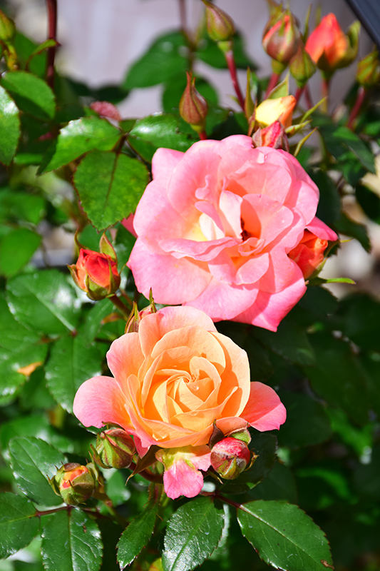 Hardiness Zone: 4b Group/Class: Dwarf Shrub Rose Brand: Drift Description: A distinct dwarf shrub rose variety producing flushes of lovely cupped peach blooms all season; a low rounded habit; all roses need full sun and well-drained soil Ornamental Features Peach Drift® Rose features showy clusters of lightly-scented double peach cup-shaped flowers at the ends of the branches from late spring to mid fall. The flowers are excellent for cutting. It has dark green deciduous foliage. The oval compound leaves do not develop any appreciable fall color. Landscape Attributes Peach Drift® Rose is a multi-stemmed deciduous shrub with a more or less rounded form. Its average texture blends into the landscape, but can be balanced by one or two finer or coarser trees or shrubs for an effective composition. This is a high maintenance shrub that will require regular care and upkeep, and is best pruned in late winter once the threat of extreme cold has passed. It is a good choice for attracting bees and butterflies to your yard. Gardeners should be aware of the following characteristic(s) that may warrant special consideration; Peach Drift® Rose is recommended for the following landscape applications; Planting & Growing Peach Drift® Rose will grow to be about 18 inches tall at maturity, with a spread of 24 inches. It tends to fill out right to the ground and therefore doesn't necessarily require facer plants in front. It grows at a fast rate, and under ideal conditions can be expected to live for approximately 20 years. This shrub should only be grown in full sunlight. It does best in average to evenly moist conditions, but will not tolerate standing water. It is not particular as to soil type or pH. It is somewhat tolerant of urban pollution. This particular variety is an interspecific hybrid.