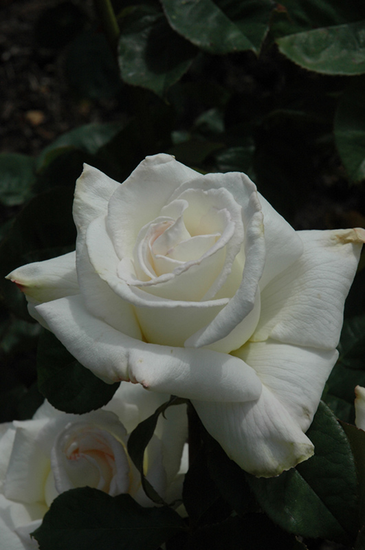 Hardiness Zone: 5b Group/Class: Hybrid Tea Rose Brand: Star Roses & Plants Description: A graceful variety that produces lovely, perfectly formed white blooms that light up the garden; needs full sun and well-drained soil; foliage is dark green with good disease resistance; strong, spicy fragrance Ornamental Features Secret's Out!™ Rose features showy fragrant double white flowers at the ends of the branches from early summer to early fall. The flowers are excellent for cutting. It has dark green deciduous foliage. The glossy oval compound leaves do not develop any appreciable fall color. Landscape Attributes Secret's Out!™ Rose is a multi-stemmed deciduous shrub with an upright spreading habit of growth. Its average texture blends into the landscape, but can be balanced by one or two finer or coarser trees or shrubs for an effective composition. This is a high maintenance shrub that will require regular care and upkeep, and is best pruned in late winter once the threat of extreme cold has passed. Gardeners should be aware of the following characteristic(s) that may warrant special consideration; Secret's Out!™ Rose is recommended for the following landscape applications; Planting & Growing Secret's Out!™ Rose will grow to be about 4 feet tall at maturity, with a spread of 3 feet. It tends to fill out right to the ground and therefore doesn't necessarily require facer plants in front. It grows at a fast rate, and under ideal conditions can be expected to live for approximately 20 years. This shrub should only be grown in full sunlight. It does best in average to evenly moist conditions, but will not tolerate standing water. It is not particular as to soil type or pH. It is somewhat tolerant of urban pollution. This particular variety is an interspecific hybrid. Secret's Out!™ Rose makes a fine choice for the outdoor landscape, but it is also well-suited for use in outdoor pots and containers. With its upright habit of growth, it is best suited for use as a 'thriller' in the 'spiller-thriller-filler' container combination; plant it near the center of the pot, surrounded by smaller plants and those that spill over the edges. It is even sizeable enough that it can be grown alone in a suitable container. Note that when grown in a container, it may not perform exactly as indicated on the tag - this is to be expected. Also note that when growing plants in outdoor containers and baskets, they may require more frequent waterings than they would in the yard or garden.
