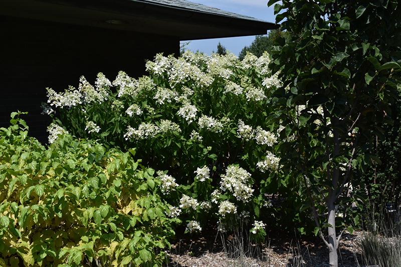 Hardiness Zone: 3b Description: A showy garden shrub valued for its cone-shaped panicles of elegant flowers that change from white, to pink and purple, over an extended period; blooms well in shade; regular pruning recommended; needs slightly acidic well-drained soil Ornamental Features Chantilly Lace Hydrangea features bold conical white flowers at the ends of the branches from mid summer to late fall. The flowers are excellent for cutting. It has green deciduous foliage. The pointy leaves do not develop any appreciable fall color. Landscape Attributes Chantilly Lace Hydrangea is a multi-stemmed deciduous shrub with an upright spreading habit of growth. Its relatively coarse texture can be used to stand it apart from other landscape plants with finer foliage. This shrub will require occasional maintenance and upkeep, and is best pruned in late winter once the threat of extreme cold has passed. It has no significant negative characteristics. Chantilly Lace Hydrangea is recommended for the following landscape applications; Planting & Growing Chantilly Lace Hydrangea will grow to be about 5 feet tall at maturity, with a spread of 6 feet. It tends to be a little leggy, with a typical clearance of 1 foot from the ground, and is suitable for planting under power lines. It grows at a medium rate, and under ideal conditions can be expected to live for 40 years or more. This shrub performs well in both full sun and full shade. It prefers to grow in average to moist conditions, and shouldn't be allowed to dry out. It is not particular as to soil type or pH. It is highly tolerant of urban pollution and will even thrive in inner city environments. Consider applying a thick mulch around the root zone in winter to protect it in exposed locations or colder microclimates. This is a selected variety of a species not originally from North America.
