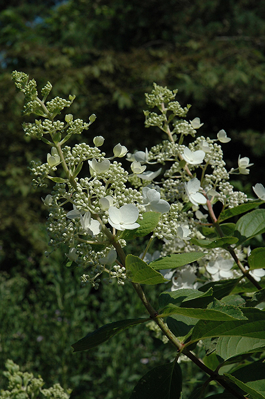 Hardiness Zone: 4a Description: A showy garden shrub valued for its cone-shaped panicles of elegant white flowers which appear in mid-summer, blooms well in shade; somewhat coarse in appearance, regular pruning recommended; needs slightly acidic well-drained soil Ornamental Features White Tiara Hydrangea features bold conical white flowers at the ends of the branches from mid summer to late fall. The flowers are excellent for cutting. It has green deciduous foliage. The pointy leaves do not develop any appreciable fall color. Landscape Attributes White Tiara Hydrangea is a multi-stemmed deciduous shrub with an upright spreading habit of growth. Its relatively coarse texture can be used to stand it apart from other landscape plants with finer foliage. This shrub will require occasional maintenance and upkeep, and is best pruned in late winter once the threat of extreme cold has passed. It has no significant negative characteristics. White Tiara Hydrangea is recommended for the following landscape applications; Planting & Growing White Tiara Hydrangea will grow to be about 15 feet tall at maturity, with a spread of 10 feet. It tends to be a little leggy, with a typical clearance of 1 foot from the ground, and is suitable for planting under power lines. It grows at a medium rate, and under ideal conditions can be expected to live for 40 years or more. This shrub performs well in both full sun and full shade. It prefers to grow in average to moist conditions, and shouldn't be allowed to dry out. It is not particular as to soil type or pH. It is highly tolerant of urban pollution and will even thrive in inner city environments. Consider applying a thick mulch around the root zone in winter to protect it in exposed locations or colder microclimates. This is a selected variety of a species not originally from North America.