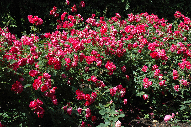 Hardiness Zone: 3a Group/Class: Explorer Rose Description: An Explorer series Rose, with an abundance of double cherry-red flowers in early summer, repeat-blooming; compact mounded habit, hardy and resistant to disease, a most beautiful garden shrub; all Roses need full sun and well-drained soil Ornamental Features George Vancouver Rose is covered in stunning fragrant double ruby-red flowers at the ends of the branches from late spring to late summer, which emerge from distinctive dark red flower buds. The flowers are excellent for cutting. It has dark green deciduous foliage. The oval compound leaves turn yellow in fall. The fruits are showy red hips displayed from mid to late fall. Landscape Attributes George Vancouver Rose is a multi-stemmed deciduous shrub with an upright spreading habit of growth. Its average texture blends into the landscape, but can be balanced by one or two finer or coarser trees or shrubs for an effective composition. This is a high maintenance shrub that will require regular care and upkeep, and is best pruned in late winter once the threat of extreme cold has passed. Gardeners should be aware of the following characteristic(s) that may warrant special consideration; George Vancouver Rose is recommended for the following landscape applications; Planting & Growing George Vancouver Rose will grow to be about 24 inches tall at maturity, with a spread of 3 feet. It tends to fill out right to the ground and therefore doesn't necessarily require facer plants in front. It grows at a fast rate, and under ideal conditions can be expected to live for approximately 20 years. This shrub should only be grown in full sunlight. It does best in average to evenly moist conditions, but will not tolerate standing water. It is not particular as to soil type or pH. It is somewhat tolerant of urban pollution. This particular variety is an interspecific hybrid. George Vancouver Rose makes a fine choice for the outdoor landscape, but it is also well-suited for use in outdoor pots and containers. With its upright habit of growth, it is best suited for use as a 'thriller' in the 'spiller-thriller-filler' container combination; plant it near the center of the pot, surrounded by smaller plants and those that spill over the edges. It is even sizeable enough that it can be grown alone in a suitable container. Note that when grown in a container, it may not perform exactly as indicated on the tag - this is to be expected. Also note that when growing plants in outdoor containers and baskets, they may require more frequent waterings than they would in the yard or garden.