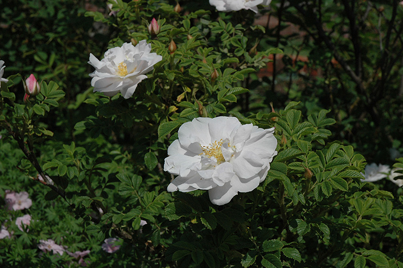 Hardiness Zone: 2b Group/Class: Explorer Rose Description: This exceptional shrub is covered in fragrant double white flowers in early summer, repeat-blooming; low growing and wide spreading, hardy and resistant to disease, makes a superb flowering groundcover; all roses need full sun and well-drained soil Ornamental Features Henry Hudson Rose is smothered in stunning lightly-scented white flowers at the ends of the branches from late spring to late summer, which emerge from distinctive pink flower buds. The flowers are excellent for cutting. It has dark green deciduous foliage. The oval compound leaves turn an outstanding red in the fall. Landscape Attributes Henry Hudson Rose is a multi-stemmed deciduous shrub with an upright spreading habit of growth. Its average texture blends into the landscape, but can be balanced by one or two finer or coarser trees or shrubs for an effective composition. This is a high maintenance shrub that will require regular care and upkeep, and is best pruned in late winter once the threat of extreme cold has passed. Gardeners should be aware of the following characteristic(s) that may warrant special consideration; Henry Hudson Rose is recommended for the following landscape applications; Planting & Growing Henry Hudson Rose will grow to be about 24 inches tall at maturity, with a spread of 3 feet. It tends to fill out right to the ground and therefore doesn't necessarily require facer plants in front. It grows at a fast rate, and under ideal conditions can be expected to live for approximately 20 years. This shrub should only be grown in full sunlight. It does best in average to evenly moist conditions, but will not tolerate standing water. It is not particular as to soil type or pH. It is somewhat tolerant of urban pollution. This particular variety is an interspecific hybrid. Henry Hudson Rose makes a fine choice for the outdoor landscape, but it is also well-suited for use in outdoor pots and containers. With its upright habit of growth, it is best suited for use as a 'thriller' in the 'spiller-thriller-filler' container combination; plant it near the center of the pot, surrounded by smaller plants and those that spill over the edges. It is even sizeable enough that it can be grown alone in a suitable container. Note that when grown in a container, it may not perform exactly as indicated on the tag - this is to be expected. Also note that when growing plants in outdoor containers and baskets, they may require more frequent waterings than they would in the yard or garden.