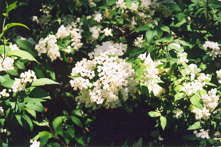 Hardiness Zone: 4b Description: A beautiful spring blooming shrub valued for its blanket of white flowers, fades into the background the rest of the year; ideal for general garden use, use where it can be upstaged by other plants when not at its peak Ornamental Features Lemoine Deutzia has corymbs of white trumpet-shaped flowers along the branches in late spring. It has green deciduous foliage. The pointy leaves do not develop any appreciable fall color. Landscape Attributes Lemoine Deutzia is a dense multi-stemmed deciduous shrub with a more or less rounded form. Its relatively fine texture sets it apart from other landscape plants with less refined foliage. This is a high maintenance shrub that will require regular care and upkeep, and should only be pruned after flowering to avoid removing any of the current season's flowers. It has no significant negative characteristics. Lemoine Deutzia is recommended for the following landscape applications; Planting & Growing Lemoine Deutzia will grow to be about 6 feet tall at maturity, with a spread of 6 feet. It tends to be a little leggy, with a typical clearance of 1 foot from the ground, and is suitable for planting under power lines. It grows at a slow rate, and under ideal conditions can be expected to live for approximately 20 years. This shrub should only be grown in full sunlight. It is very adaptable to both dry and moist locations, and should do just fine under average home landscape conditions. It is not particular as to soil type or pH, and is able to handle environmental salt. It is highly tolerant of urban pollution and will even thrive in inner city environments. This particular variety is an interspecific hybrid.
