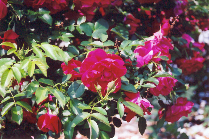 Hardiness Zone: 3b Group/Class: Shrub Rose Description: This well-known hardy shrub rose is covered in very showy fragrant double brilliant red flowers from early summer through into fall; an upright and imposing shrub that offers brilliant color for the garden composition; needs full sun and well-drained soil Ornamental Features The Hunter Rose is draped in stunning double red flowers at the ends of the branches from late spring to late summer. The flowers are excellent for cutting. It has dark green deciduous foliage. The oval compound leaves turn an outstanding red in the fall. The fruits are showy red hips displayed from mid to late fall. The spiny brick red bark adds an interesting dimension to the landscape. Landscape Attributes The Hunter Rose is a multi-stemmed deciduous shrub with an upright spreading habit of growth. Its average texture blends into the landscape, but can be balanced by one or two finer or coarser trees or shrubs for an effective composition. This is a high maintenance shrub that will require regular care and upkeep, and is best pruned in late winter once the threat of extreme cold has passed. Gardeners should be aware of the following characteristic(s) that may warrant special consideration; The Hunter Rose is recommended for the following landscape applications; Planting & Growing The Hunter Rose will grow to be about 4 feet tall at maturity, with a spread of 3 feet. It tends to fill out right to the ground and therefore doesn't necessarily require facer plants in front. It grows at a fast rate, and under ideal conditions can be expected to live for approximately 20 years. This shrub should only be grown in full sunlight. It does best in average to evenly moist conditions, but will not tolerate standing water. It is not particular as to soil type or pH. It is somewhat tolerant of urban pollution. This particular variety is an interspecific hybrid.