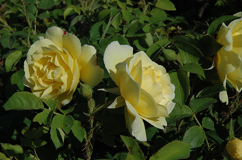 Hardiness Zone: 3b Group/Class: Shrub Rose Description: A recent hardy shrub rose introduction, featuring exceptionally pretty double yellow flowers in early summer, repeat-blooming; bushy, upright habit, hardy and resistant to disease, breathtaking when used in masses; needs full sun and well-drained soil Ornamental Features Topaz Jewel Rose is smothered in stunning fragrant semi-double lemon yellow flowers with gold eyes at the ends of the branches from late spring to late summer, which emerge from distinctive gold flower buds. The flowers are excellent for cutting. It has dark green deciduous foliage. The oval compound leaves turn an outstanding scarlet in the fall. The spiny brick red bark adds an interesting dimension to the landscape. Landscape Attributes Topaz Jewel Rose is a multi-stemmed deciduous shrub with an upright spreading habit of growth. Its average texture blends into the landscape, but can be balanced by one or two finer or coarser trees or shrubs for an effective composition. This is a high maintenance shrub that will require regular care and upkeep, and is best pruned in late winter once the threat of extreme cold has passed. Gardeners should be aware of the following characteristic(s) that may warrant special consideration; Topaz Jewel Rose is recommended for the following landscape applications; Planting & Growing Topaz Jewel Rose will grow to be about 4 feet tall at maturity, with a spread of 4 feet. It tends to fill out right to the ground and therefore doesn't necessarily require facer plants in front. It grows at a fast rate, and under ideal conditions can be expected to live for approximately 20 years. This shrub should only be grown in full sunlight. It does best in average to evenly moist conditions, but will not tolerate standing water. It is not particular as to soil type or pH. It is somewhat tolerant of urban pollution. This particular variety is an interspecific hybrid.