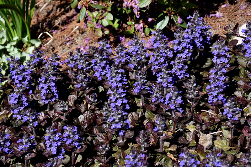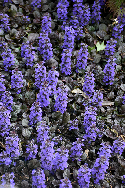 Hardiness Zone: 4a Other Names: Carpet Bugle Brand: Proven Winners Description: A vigorous, low growing and spreading selection that features stunning scalloped, deep, dark purple foliage; blue flower spikes appear in the spring and into the early summer; heat tolerant and low maintenance; deadhead spent flowers Ornamental Features Black Scallop Bugleweed's attractive small crinkled round leaves emerge dark green in spring, turning deep purple in color the rest of the year on a plant with a spreading habit of growth. It features subtle spikes of blue flowers rising above the foliage from mid spring to early summer. Landscape Attributes Black Scallop Bugleweed is a dense herbaceous evergreen perennial with a ground-hugging habit of growth. Its medium texture blends into the garden, but can always be balanced by a couple of finer or coarser plants for an effective composition. This plant will require occasional maintenance and upkeep, and should not require much pruning, except when necessary, such as to remove dieback. It is a good choice for attracting butterflies to your yard, but is not particularly attractive to deer who tend to leave it alone in favor of tastier treats. Gardeners should be aware of the following characteristic(s) that may warrant special consideration; Black Scallop Bugleweed is recommended for the following landscape applications; Planting & Growing Black Scallop Bugleweed will grow to be about 8 inches tall at maturity, with a spread of 14 inches. Its foliage tends to remain low and dense right to the ground. It grows at a medium rate, and under ideal conditions can be expected to live for approximately 10 years. As an evegreen perennial, this plant will typically keep its form and foliage year-round. This plant performs well in both full sun and full shade. It does best in average to evenly moist conditions, but will not tolerate standing water. It is not particular as to soil type or pH. It is somewhat tolerant of urban pollution. Consider covering it with a thick layer of mulch in winter to protect it in exposed locations or colder microclimates. This is a selected variety of a species not originally from North America. It can be propagated by division; however, as a cultivated variety, be aware that it may be subject to certain restrictions or prohibitions on propagation. Black Scallop Bugleweed is a fine choice for the garden, but it is also a good selection for planting in outdoor containers and hanging baskets. Because of its spreading habit of growth, it is ideally suited for use as a 'spiller' in the 'spiller-thriller-filler' container combination; plant it near the edges where it can spill gracefully over the pot. Note that when growing plants in outdoor containers and baskets, they may require more frequent waterings than they would in the yard or garden.