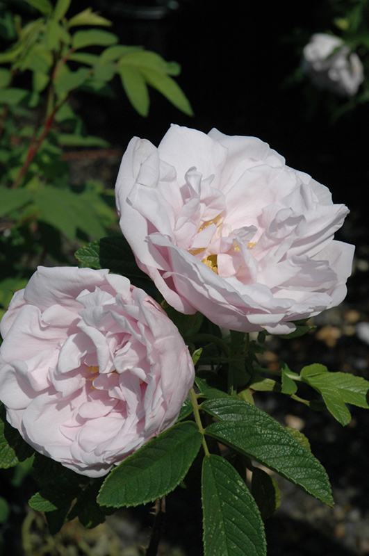 Hardiness Zone: 3b Group/Class: Pavement Rose Description: This Pavement series rose has fragrant double white flowers blushed pink in early summer, repeat-blooming; compact, mounded habit, tough and disease-resistant, ideal for lining a driveway or sidewalk; all roses need full sun and well-drained soil Ornamental Features Snow Pavement Rose is covered in stunning fragrant semi-double white flowers with shell pink overtones and yellow eyes at the ends of the branches from late spring to late summer, which emerge from distinctive pink flower buds. The flowers are excellent for cutting. It has dark green deciduous foliage. The oval compound leaves turn yellow in fall. The fruits are showy red hips displayed from mid to late fall. Landscape Attributes Snow Pavement Rose is a multi-stemmed deciduous shrub with an upright spreading habit of growth. Its average texture blends into the landscape, but can be balanced by one or two finer or coarser trees or shrubs for an effective composition. This is a high maintenance shrub that will require regular care and upkeep, and is best pruned in late winter once the threat of extreme cold has passed. Gardeners should be aware of the following characteristic(s) that may warrant special consideration; Snow Pavement Rose is recommended for the following landscape applications; Planting & Growing Snow Pavement Rose will grow to be about 3 feet tall at maturity, with a spread of 4 feet. It tends to fill out right to the ground and therefore doesn't necessarily require facer plants in front. It grows at a fast rate, and under ideal conditions can be expected to live for approximately 20 years. This shrub should only be grown in full sunlight. It does best in average to evenly moist conditions, but will not tolerate standing water. It is not particular as to soil type or pH, and is able to handle environmental salt. It is highly tolerant of urban pollution and will even thrive in inner city environments. This particular variety is an interspecific hybrid.