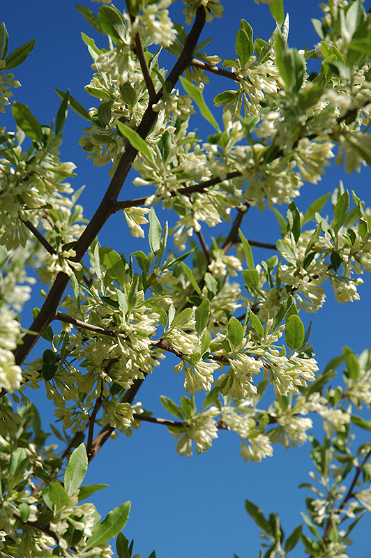 Hardiness Zone: 2a Other Names: Wolf Willow Description: A spreading, suckering shrub with distinct grayish-silver foliage all season long, makes a wonderful color contrast where the suckering is not a problem; irregular shrubby habit; small yellow flowers are sweetly fragrant, extremely drought tolerant Ornamental Features Silverberry has attractive silver deciduous foliage on a plant with an upright spreading habit of growth. The fuzzy narrow leaves are highly ornamental but do not develop any appreciable fall color. It features subtle fragrant buttery yellow bell-shaped flowers along the branches in late spring. Landscape Attributes Silverberry is a multi-stemmed deciduous shrub with an upright spreading habit of growth. Its relatively fine texture sets it apart from other landscape plants with less refined foliage. This is a high maintenance shrub that will require regular care and upkeep, and is best pruned in late winter once the threat of extreme cold has passed. Gardeners should be aware of the following characteristic(s) that may warrant special consideration; Silverberry is recommended for the following landscape applications; Planting & Growing Silverberry will grow to be about 10 feet tall at maturity, with a spread of 10 feet. It tends to be a little leggy, with a typical clearance of 1 foot from the ground, and is suitable for planting under power lines. It grows at a fast rate, and under ideal conditions can be expected to live for approximately 30 years. This shrub should only be grown in full sunlight. It is very adaptable to both dry and moist locations, and should do just fine under average home landscape conditions. It is considered to be drought-tolerant, and thus makes an ideal choice for xeriscaping or the moisture-conserving landscape. It is particular about its soil conditions, with a strong preference for clay, alkaline soils, and is able to handle environmental salt. It is highly tolerant of urban pollution and will even thrive in inner city environments. This species is native to parts of North America.