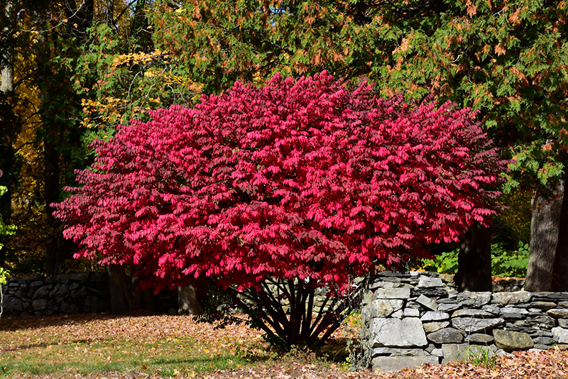Hardiness Zone: 3b Other Names: Winged Euonymus, Burningbush Description: One of the very best shrubs for fall color, turns a florescent red to pink color, very showy; attractive broad mounded growth habit and interesting corky wings on the branches; very adaptable and versatile; plan for the future as it can grow rather large Ornamental Features Winged Burning Bush has rich green deciduous foliage on a plant with a round habit of growth. The pointy leaves turn an outstanding cherry red in the fall. It produces red capsules from early to late fall. The warty brown bark and harvest gold branches are extremely showy and add significant winter interest. Landscape Attributes Winged Burning Bush is a multi-stemmed deciduous shrub with a more or less rounded form. Its average texture blends into the landscape, but can be balanced by one or two finer or coarser trees or shrubs for an effective composition. This is a relatively low maintenance shrub, and can be pruned at anytime. It has no significant negative characteristics. Winged Burning Bush is recommended for the following landscape applications; Planting & Growing Winged Burning Bush will grow to be about 10 feet tall at maturity, with a spread of 10 feet. It tends to fill out right to the ground and therefore doesn't necessarily require facer plants in front, and is suitable for planting under power lines. It grows at a slow rate, and under ideal conditions can be expected to live for 50 years or more. This shrub performs well in both full sun and full shade. It is very adaptable to both dry and moist locations, and should do just fine under average home landscape conditions. It is not particular as to soil type or pH. It is highly tolerant of urban pollution and will even thrive in inner city environments. This species is not originally from North America.