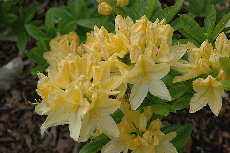 Hardiness Zone: 5a Other Names: Honeysuckle Azalea Description: Clusters of highly fragrant, bright yellow blooms in mid to late spring; matures to a large, airy shrub with attractive leaves that turn red-orange in the fall; needs highly acidic and organic soil that is well drained Ornamental Features Yellow Azalea is covered in stunning clusters of fragrant yellow trumpet-shaped flowers at the ends of the branches from mid to late spring. It has dark green deciduous foliage. The glossy narrow leaves turn an outstanding orange in the fall. Landscape Attributes Yellow Azalea is an open multi-stemmed deciduous shrub with an upright spreading habit of growth. Its relatively coarse texture can be used to stand it apart from other landscape plants with finer foliage. This is a relatively low maintenance shrub, and should only be pruned after flowering to avoid removing any of the current season's flowers. It has no significant negative characteristics. Yellow Azalea is recommended for the following landscape applications; Planting & Growing Yellow Azalea will grow to be about 8 feet tall at maturity, with a spread of 8 feet. It tends to be a little leggy, with a typical clearance of 1 foot from the ground, and is suitable for planting under power lines. It grows at a slow rate, and under ideal conditions can be expected to live for 40 years or more. This shrub does best in full sun to partial shade. You may want to keep it away from hot, dry locations that receive direct afternoon sun or which get reflected sunlight, such as against the south side of a white wall. It requires an evenly moist well-drained soil for optimal growth, but will die in standing water. It is very fussy about its soil conditions and must have rich, acidic soils to ensure success, and is subject to chlorosis (yellowing) of the foliage in alkaline soils. It is somewhat tolerant of urban pollution, and will benefit from being planted in a relatively sheltered location. Consider applying a thick mulch around the root zone in winter to protect it in exposed locations or colder microclimates. This species is not originally from North America.