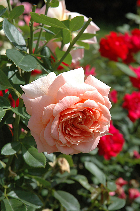 Hardiness Zone: 4a Other Names: Dakota Song Rose Group/Class: Buck Rose Description: An extraordinary shrub rose that features abundant peach-pink flowers with a fruity fragrance all season; compact, upright habit, quite adaptable and resistant to disease, a valuable garden shrub; all roses need full sun and well-drained soil Ornamental Features Dakota's Song Rose is blanketed in stunning fragrant double peach flowers with shell pink overtones and gold eyes at the ends of the branches from late spring to late summer. The flowers are excellent for cutting. It has dark green deciduous foliage. The oval compound leaves turn yellow in fall. The fruits are showy orange hips displayed from mid to late fall. The spiny brick red bark adds an interesting dimension to the landscape. Landscape Attributes Dakota's Song Rose is a multi-stemmed deciduous shrub with an upright spreading habit of growth. Its average texture blends into the landscape, but can be balanced by one or two finer or coarser trees or shrubs for an effective composition. This shrub will require occasional maintenance and upkeep, and is best pruned in late winter once the threat of extreme cold has passed. Gardeners should be aware of the following characteristic(s) that may warrant special consideration; Dakota's Song Rose is recommended for the following landscape applications; Planting & Growing Dakota's Song Rose will grow to be about 4 feet tall at maturity, with a spread of 4 feet. It tends to fill out right to the ground and therefore doesn't necessarily require facer plants in front. It grows at a fast rate, and under ideal conditions can be expected to live for approximately 20 years. This shrub should only be grown in full sunlight. It does best in average to evenly moist conditions, but will not tolerate standing water. It is not particular as to soil type or pH. It is somewhat tolerant of urban pollution. This particular variety is an interspecific hybrid.