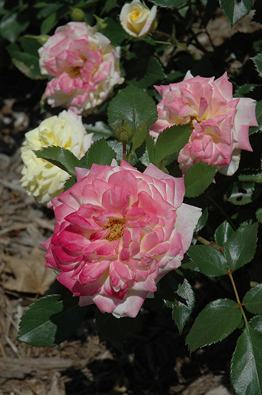 Hardiness Zone: 4a Group/Class: Shrub Rose Description: A brilliantly colored variety producing blooms that are butter yellow in the center, surrounded by flashes of white and pink edges; very disease resistant; outstanding in the garden or along borders Ornamental Features Music Box Rose features showy lightly-scented double buttery yellow flowers with white overtones, yellow eyes and pink edges at the ends of the branches from late spring to early fall. The flowers are excellent for cutting. It has dark green deciduous foliage. The glossy oval compound leaves do not develop any appreciable fall color. Landscape Attributes Music Box Rose is a multi-stemmed deciduous shrub with an upright spreading habit of growth. Its average texture blends into the landscape, but can be balanced by one or two finer or coarser trees or shrubs for an effective composition. This is a high maintenance shrub that will require regular care and upkeep, and is best pruned in late winter once the threat of extreme cold has passed. Gardeners should be aware of the following characteristic(s) that may warrant special consideration; Music Box Rose is recommended for the following landscape applications; Planting & Growing Music Box Rose will grow to be about 4 feet tall at maturity, with a spread of 4 feet. It tends to fill out right to the ground and therefore doesn't necessarily require facer plants in front. It grows at a fast rate, and under ideal conditions can be expected to live for approximately 20 years. This shrub should only be grown in full sunlight. It does best in average to evenly moist conditions, but will not tolerate standing water. It is not particular as to soil type or pH. It is somewhat tolerant of urban pollution. This particular variety is an interspecific hybrid. Music Box Rose makes a fine choice for the outdoor landscape, but it is also well-suited for use in outdoor pots and containers. With its upright habit of growth, it is best suited for use as a 'thriller' in the 'spiller-thriller-filler' container combination; plant it near the center of the pot, surrounded by smaller plants and those that spill over the edges. It is even sizeable enough that it can be grown alone in a suitable container. Note that when grown in a container, it may not perform exactly as indicated on the tag - this is to be expected. Also note that when growing plants in outdoor containers and baskets, they may require more frequent waterings than they would in the yard or garden.