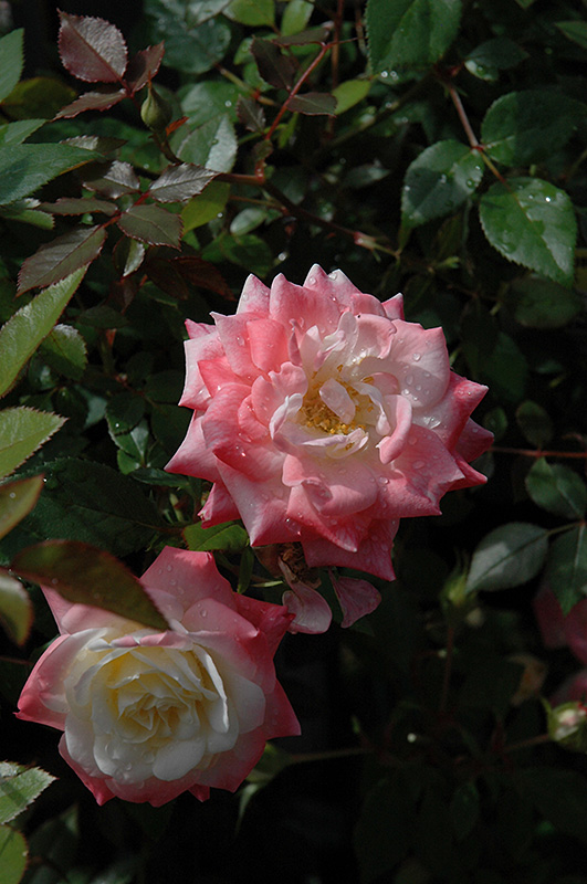 Hardiness Zone: 4a Group/Class: Miniature Rose Description: Beautifully radiant white blooms with salmon-pink petal edges, and butter yellow centers; great for smaller garden areas and containers Ornamental Features X-Rated Rose features showy double white flowers with buttery yellow eyes and salmon edges at the ends of the branches from late spring to early fall. The flowers are excellent for cutting. It has dark green deciduous foliage which emerges brick red in spring. The glossy oval compound leaves turn yellow in fall. Landscape Attributes X-Rated Rose is a multi-stemmed deciduous shrub with an upright spreading habit of growth. Its average texture blends into the landscape, but can be balanced by one or two finer or coarser trees or shrubs for an effective composition. This shrub will require occasional maintenance and upkeep, and is best pruned in late winter once the threat of extreme cold has passed. It has no significant negative characteristics. X-Rated Rose is recommended for the following landscape applications; Planting & Growing X-Rated Rose will grow to be about 24 inches tall at maturity, with a spread of 24 inches. It tends to fill out right to the ground and therefore doesn't necessarily require facer plants in front. It grows at a fast rate, and under ideal conditions can be expected to live for approximately 30 years. This shrub should only be grown in full sunlight. It does best in average to evenly moist conditions, but will not tolerate standing water. It is not particular as to soil type or pH. It is highly tolerant of urban pollution and will even thrive in inner city environments. This particular variety is an interspecific hybrid.