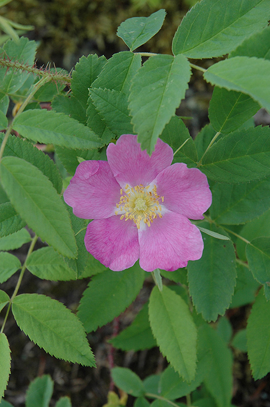 Hardiness Zone: 2a Other Names: Prickly Rose, Bristly Rose Description: A cold hardy native rose variety that occurs in average to acidic, rocky soils; features single pink flowers with yellow centers that bloom in mid-spring only; hips appear in late summer adding fall interest; excellent for rock gardens or hedging Ornamental Features Prickly Wild Rose features showy lightly-scented pink flowers with yellow eyes at the ends of the branches from mid to late spring, which emerge from distinctive red flower buds. The flowers are excellent for cutting. It has dark green deciduous foliage. The serrated oval compound leaves turn yellow in fall. The fruits are showy scarlet hips displayed in late summer. Landscape Attributes Prickly Wild Rose is a multi-stemmed deciduous shrub with an upright spreading habit of growth. Its average texture blends into the landscape, but can be balanced by one or two finer or coarser trees or shrubs for an effective composition. This shrub will require occasional maintenance and upkeep, and is best pruned in late winter once the threat of extreme cold has passed. It is a good choice for attracting birds, bees and butterflies to your yard. Gardeners should be aware of the following characteristic(s) that may warrant special consideration; Prickly Wild Rose is recommended for the following landscape applications; Planting & Growing Prickly Wild Rose will grow to be about 8 feet tall at maturity, with a spread of 10 feet. It tends to fill out right to the ground and therefore doesn't necessarily require facer plants in front, and is suitable for planting under power lines. It grows at a fast rate, and under ideal conditions can be expected to live for approximately 30 years. This shrub should only be grown in full sunlight. It does best in average to evenly moist conditions, but will not tolerate standing water. It is not particular as to soil type or pH. It is somewhat tolerant of urban pollution. This species is native to parts of North America.