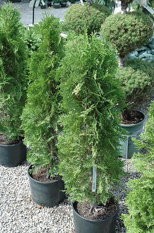 Hardiness Zone: 3a Other Names: Eastern White Cedar Description: A characteristically narrow and spire-like evergreen for home landscape use; dense foliage remains bright year round; grows quite tall, makes a stunning vertical accent that is hardy and adaptable; takes pruning well; best with some sun Ornamental Features Malonyana Arborvitae is primarily valued in the landscape for its rigidly columnar form. It has rich green evergreen foliage which emerges light green in spring. The scale-like sprays of foliage remain green throughout the winter. Landscape Attributes Malonyana Arborvitae is a dense multi-stemmed evergreen tree with a narrowly upright and columnar growth habit. Its relatively fine texture sets it apart from other landscape plants with less refined foliage. This is a relatively low maintenance tree. When pruning is necessary, it is recommended to only trim back the new growth of the current season, other than to remove any dieback. It has no significant negative characteristics. Malonyana Arborvitae is recommended for the following landscape applications; Planting & Growing Malonyana Arborvitae will grow to be about 30 feet tall at maturity, with a spread of 8 feet. It has a low canopy with a typical clearance of 1 foot from the ground, and is suitable for planting under power lines. It grows at a slow rate, and under ideal conditions can be expected to live for 50 years or more. This tree does best in full sun to partial shade. It prefers to grow in average to moist conditions, and shouldn't be allowed to dry out. It is not particular as to soil type or pH. It is somewhat tolerant of urban pollution, and will benefit from being planted in a relatively sheltered location. Consider applying a thick mulch around the root zone in winter to protect it in exposed locations or colder microclimates. This is a selection of a native North American species.