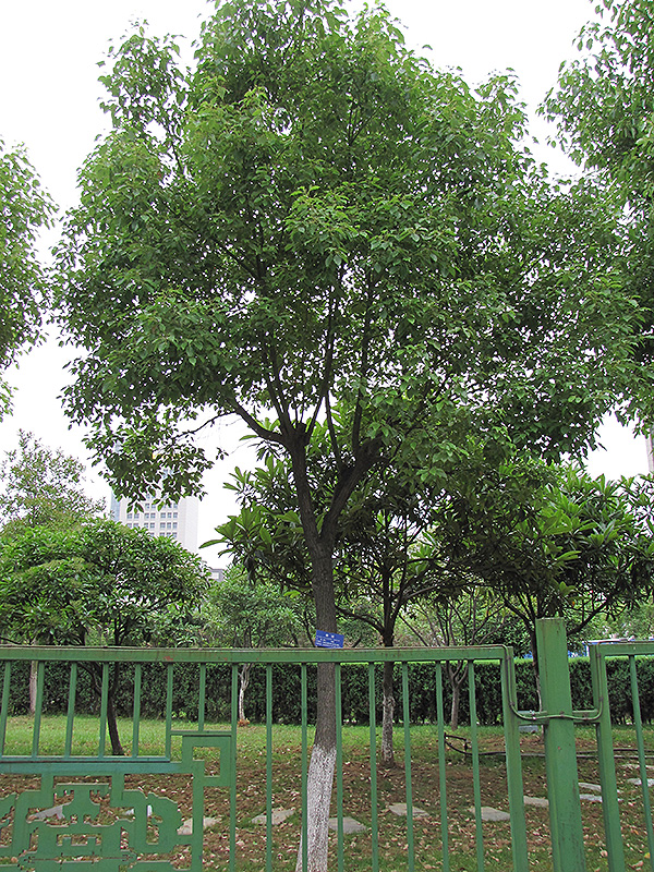 Hardiness Zone: 8b Other Names: Camphorwood, Camphor Laurel Description: This evergreen tree will eventually become quite large, producing reaching branches of glossy, aromatic green foliage with the scent of camphor; white flowers in spring; will develop into an impressive landscape tree; plant away from structures Ornamental Features Camphor Tree features showy clusters of lightly-scented white flowers at the ends of the branches from late winter to early spring. It has attractive dark green evergreen foliage which emerges light green in spring. The fragrant pointy leaves are highly ornamental and remain dark green throughout the winter. It produces black berries in mid spring. The fruit can be messy if allowed to drop on the lawn or walkways, and may require occasional clean-up. Landscape Attributes Camphor Tree is an evergreen tree with an upright spreading habit of growth. Its average texture blends into the landscape, but can be balanced by one or two finer or coarser trees or shrubs for an effective composition. This is a relatively low maintenance tree, and should only be pruned after flowering to avoid removing any of the current season's flowers. Gardeners should be aware of the following characteristic(s) that may warrant special consideration; Camphor Tree is recommended for the following landscape applications; Planting & Growing Camphor Tree will grow to be about 60 feet tall at maturity, with a spread of 50 feet. It has a low canopy with a typical clearance of 3 feet from the ground, and should not be planted underneath power lines. It grows at a slow rate, and under ideal conditions can be expected to live to a ripe old age of 150 years or more; think of this as a heritage tree for future generations! This tree does best in full sun to partial shade. It prefers to grow in average to moist conditions, and shouldn't be allowed to dry out. It is particular about its soil conditions, with a strong preference for sandy, alkaline soils, and is able to handle environmental salt. It is highly tolerant of urban pollution and will even thrive in inner city environments. This species is not originally from North America, and parts of it are known to be toxic to humans and animals, so care should be exercised in planting it around children and pets.