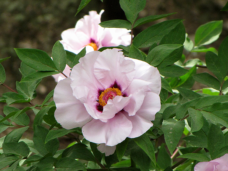 Hardiness Zone: 4b Other Names: An Ancient Beauty Tree Peony Description: Beautiful shell pink flowers with bold red-raspberry centers, surrounding a tuft of golden stamens; great as an accent in the garden or massed in borders; unlike perennial peonies, remember not to prune this variety Ornamental Features Dai Yu Tree Peony features bold lightly-scented semi-double shell pink cup-shaped flowers with gold eyes and a dark red blotch at the ends of the branches from mid to late spring. The flowers are excellent for cutting. It has green deciduous foliage. The compound leaves do not develop any appreciable fall color. Landscape Attributes Dai Yu Tree Peony is a multi-stemmed deciduous shrub with an upright spreading habit of growth. Its relatively fine texture sets it apart from other landscape plants with less refined foliage. This is a relatively low maintenance shrub, and should never be pruned except to remove any dieback, as it tends not to take pruning well. It is a good choice for attracting bees and butterflies to your yard, but is not particularly attractive to deer who tend to leave it alone in favor of tastier treats. It has no significant negative characteristics. Dai Yu Tree Peony is recommended for the following landscape applications; Planting & Growing Dai Yu Tree Peony will grow to be about 6 feet tall at maturity, with a spread of 6 feet. It has a low canopy, and is suitable for planting under power lines. It grows at a slow rate, and under ideal conditions can be expected to live for 50 years or more. This shrub does best in full sun to partial shade. It does best in average to evenly moist conditions, but will not tolerate standing water. It is not particular as to soil pH, but grows best in rich soils. It is quite intolerant of urban pollution, therefore inner city or urban streetside plantings are best avoided. Consider applying a thick mulch around the root zone in winter to protect it in exposed locations or colder microclimates. This is a selected variety of a species not originally from North America.