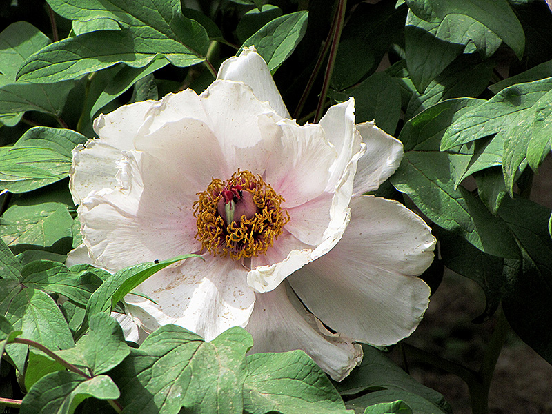 Hardiness Zone: 4b Description: A graceful woody peony for the garden, presenting white blooms with just a whisper of pink and yellow stamens; great as an accent in the garden or massed in borders; unlike perennial peonies, remember not to prune this variety Ornamental Features Xue Lian Tree Peony features bold lightly-scented semi-double white cup-shaped flowers with shell pink overtones and yellow eyes at the ends of the branches from mid to late spring. The flowers are excellent for cutting. It has attractive light green deciduous foliage. The narrow compound leaves are highly ornamental but do not develop any appreciable fall color. Landscape Attributes Xue Lian Tree Peony is a multi-stemmed deciduous shrub with an upright spreading habit of growth. Its relatively fine texture sets it apart from other landscape plants with less refined foliage. This is a relatively low maintenance shrub, and should not require much pruning, except when necessary, such as to remove dieback. It is a good choice for attracting bees and butterflies to your yard, but is not particularly attractive to deer who tend to leave it alone in favor of tastier treats. It has no significant negative characteristics. Xue Lian Tree Peony is recommended for the following landscape applications; Planting & Growing Xue Lian Tree Peony will grow to be about 4 feet tall at maturity, with a spread of 4 feet. It has a low canopy. It grows at a slow rate, and under ideal conditions can be expected to live for 50 years or more. This shrub does best in full sun to partial shade. It does best in average to evenly moist conditions, but will not tolerate standing water. It is not particular as to soil pH, but grows best in rich soils. It is quite intolerant of urban pollution, therefore inner city or urban streetside plantings are best avoided. Consider applying a thick mulch around the root zone in winter to protect it in exposed locations or colder microclimates. This is a selected variety of a species not originally from North America.