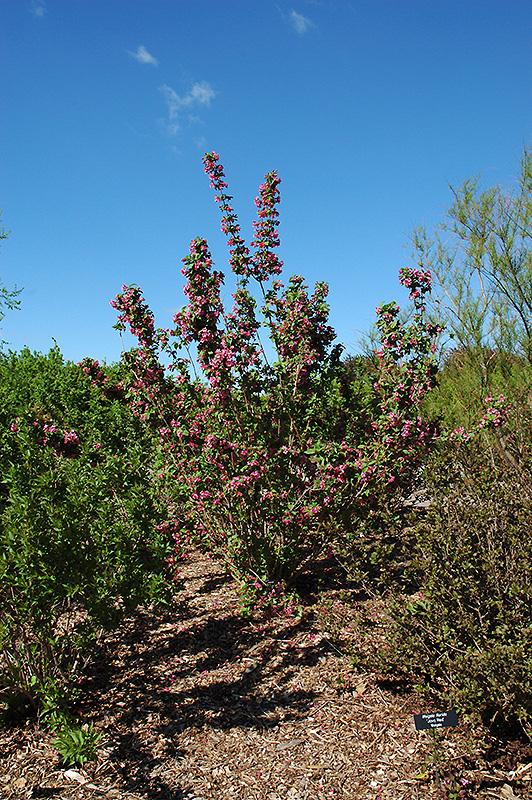 Hardiness Zone: 3a Description: A vigorous spring-flowering shrub that's covered in pink trumpet-shaped flowers, attracts hummingbirds; a background shrub the rest of the year, bushy, coarse and open in habit, good for general garden use; needs full sun, probably the hardiest variety Ornamental Features Centennial Weigela is blanketed in stunning clusters of cherry red trumpet-shaped flowers with pink overtones and yellow anthers along the branches in late spring. It has forest green deciduous foliage. The pointy leaves do not develop any appreciable fall color. Landscape Attributes Centennial Weigela is a multi-stemmed deciduous shrub with a shapely form and gracefully arching branches. Its relatively coarse texture can be used to stand it apart from other landscape plants with finer foliage. This shrub will require occasional maintenance and upkeep, and should only be pruned after flowering to avoid removing any of the current season's flowers. It is a good choice for attracting hummingbirds to your yard. It has no significant negative characteristics. Centennial Weigela is recommended for the following landscape applications; Planting & Growing Centennial Weigela will grow to be about 9 feet tall at maturity, with a spread of 10 feet. It has a low canopy, and is suitable for planting under power lines. It grows at a medium rate, and under ideal conditions can be expected to live for approximately 30 years. This shrub should only be grown in full sunlight. It prefers to grow in average to moist conditions, and shouldn't be allowed to dry out. It is not particular as to soil type or pH. It is highly tolerant of urban pollution and will even thrive in inner city environments. This is a selected variety of a species not originally from North America.