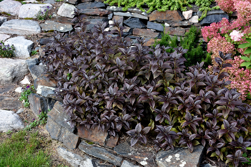 Hardiness Zone: 3a Description: A distinguished and hardy spring-flowering shrub, smothered in cherry-red trumpet-shaped flowers with yellow throats which attract hummingbirds; attractive purple-green foliage all season long on a compact and mounded garden shrub; needs full sun Ornamental Features Tango Weigela features showy clusters of cherry red trumpet-shaped flowers with yellow throats along the branches from late spring to mid summer. It has attractive deep purple-tipped dark green foliage which emerges deep purple in spring. The pointy leaves are highly ornamental but do not develop any appreciable fall color. Landscape Attributes Tango Weigela is a multi-stemmed deciduous shrub with an upright spreading habit of growth. Its average texture blends into the landscape, but can be balanced by one or two finer or coarser trees or shrubs for an effective composition. This shrub will require occasional maintenance and upkeep, and should only be pruned after flowering to avoid removing any of the current season's flowers. It is a good choice for attracting hummingbirds to your yard. It has no significant negative characteristics. Tango Weigela is recommended for the following landscape applications; Planting & Growing Tango Weigela will grow to be about 24 inches tall at maturity, with a spread of 3 feet. It tends to fill out right to the ground and therefore doesn't necessarily require facer plants in front. It grows at a medium rate, and under ideal conditions can be expected to live for approximately 30 years. This shrub should only be grown in full sunlight. It prefers to grow in average to moist conditions, and shouldn't be allowed to dry out. It is not particular as to soil type or pH. It is highly tolerant of urban pollution and will even thrive in inner city environments. This is a selected variety of a species not originally from North America. Tango Weigela makes a fine choice for the outdoor landscape, but it is also well-suited for use in outdoor pots and containers. With its upright habit of growth, it is best suited for use as a 'thriller' in the 'spiller-thriller-filler' container combination; plant it near the center of the pot, surrounded by smaller plants and those that spill over the edges. It is even sizeable enough that it can be grown alone in a suitable container. Note that when grown in a container, it may not perform exactly as indicated on the tag - this is to be expected. Also note that when growing plants in outdoor containers and baskets, they may require more frequent waterings than they would in the yard or garden.