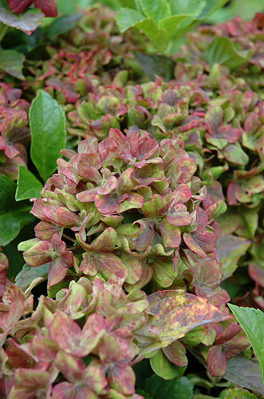 Hardiness Zone: 4b Other Names: French Hydrangea, Bigleaf Hydrangea Group/Class: Forever and Ever Series Description: Magnificent blooms of pink or lavender, with bright green petal tips and edges; a compact plant that is awash in color all summer; pink or blue tone depends on soil type; a sensational ornamental shrub for the garden or border Ornamental Features Pistachio Hydrangea features showy clusters of pink flowers with lavender overtones and light green edges at the ends of the branches from early to late summer. The flowers are excellent for cutting. It has forest green deciduous foliage. The glossy pointy leaves turn an outstanding burgundy in the fall. Landscape Attributes Pistachio Hydrangea is a multi-stemmed deciduous shrub with a mounded form. Its relatively coarse texture can be used to stand it apart from other landscape plants with finer foliage. This shrub will require occasional maintenance and upkeep, and should only be pruned after flowering to avoid removing any of the current season's flowers. It has no significant negative characteristics. Pistachio Hydrangea is recommended for the following landscape applications; Planting & Growing Pistachio Hydrangea will grow to be about 3 feet tall at maturity, with a spread of 5 feet. It tends to fill out right to the ground and therefore doesn't necessarily require facer plants in front. It grows at a fast rate, and under ideal conditions can be expected to live for approximately 20 years. This shrub should be grown in a location with partial shade and which is shaded from the hot afternoon sun. It requires an evenly moist well-drained soil for optimal growth. It is not particular as to soil type, but has a definite preference for acidic soils. It is highly tolerant of urban pollution and will even thrive in inner city environments, and will benefit from being planted in a relatively sheltered location. Consider applying a thick mulch around the root zone in both summer and winter to conserve soil moisture and protect it in exposed locations or colder microclimates. This is a selected variety of a species not originally from North America. Pistachio Hydrangea makes a fine choice for the outdoor landscape, but it is also well-suited for use in outdoor pots and containers. Because of its height, it is often used as a 'thriller' in the 'spiller-thriller-filler' container combination; plant it near the center of the pot, surrounded by smaller plants and those that spill over the edges. It is even sizeable enough that it can be grown alone in a suitable container. Note that when grown in a container, it may not perform exactly as indicated on the tag - this is to be expected. Also note that when growing plants in outdoor containers and baskets, they may require more frequent waterings than they would in the yard or garden.