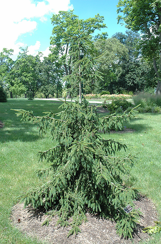 Hardiness Zone: 5a Description: A magnificent slow growing specimen, this is a tall, spire-like evergreen with dense, dark green foliage which emerges a showy chartreuse-gold; branches have a gracefully pendant habit, a great tree for introducing emphatic color and form to the landscape Ornamental Features Gold Tipped Oriental Spruce is primarily valued in the landscape for its distinctively pyramidal habit of growth. It has attractive dark green evergreen foliage which emerges chartreuse in spring. The needles are highly ornamental and remain dark green throughout the winter. The rough brown bark adds an interesting dimension to the landscape. Landscape Attributes Gold Tipped Oriental Spruce is a dense evergreen tree with a strong central leader and a distinctive and refined pyramidal form. Its relatively fine texture sets it apart from other landscape plants with less refined foliage. This is a relatively low maintenance tree. When pruning is necessary, it is recommended to only trim back the new growth of the current season, other than to remove any dieback. It has no significant negative characteristics. Gold Tipped Oriental Spruce is recommended for the following landscape applications; Planting & Growing Gold Tipped Oriental Spruce will grow to be about 40 feet tall at maturity, with a spread of 20 feet. It has a low canopy, and should not be planted underneath power lines. It grows at a slow rate, and under ideal conditions can be expected to live for 70 years or more. This tree should only be grown in full sunlight. It is very adaptable to both dry and moist growing conditions, but will not tolerate any standing water. It is not particular as to soil type or pH. It is somewhat tolerant of urban pollution, and will benefit from being planted in a relatively sheltered location. Consider applying a thick mulch around the root zone in winter to protect it in exposed locations or colder microclimates. This is a selected variety of a species not originally from North America.