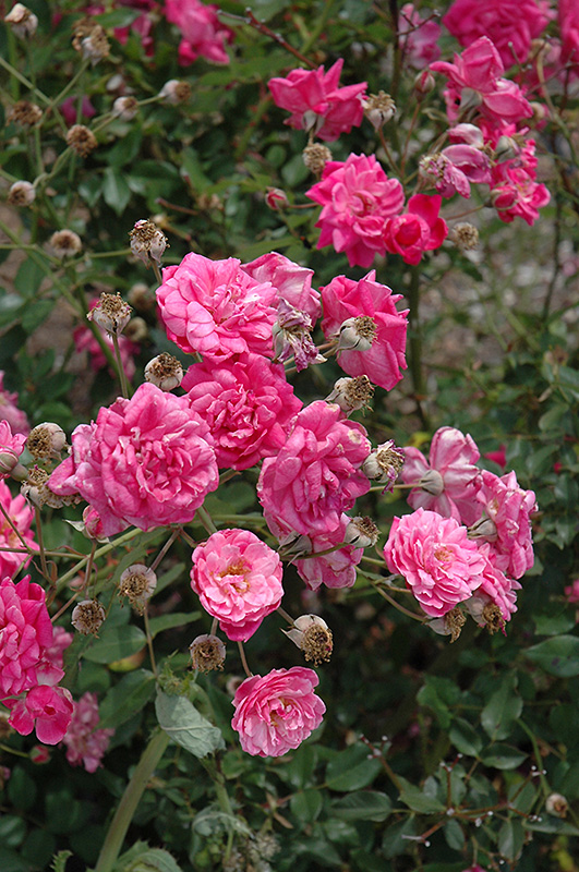 Hardiness Zone: 6b Group/Class: Old China Rose Description: A beautiful, vigorous old china rose with double blooms of scarlet and pink; a good selection for containers or as a garden accent; blooms tend to be more scarlet towards fall Ornamental Features Fellenberg Rose features showy fragrant double scarlet flowers with rose overtones at the ends of the branches from late spring to mid fall. The flowers are excellent for cutting. It has dark green deciduous foliage. The glossy oval compound leaves do not develop any appreciable fall color. Landscape Attributes Fellenberg Rose is a multi-stemmed deciduous shrub with an upright spreading habit of growth. Its average texture blends into the landscape, but can be balanced by one or two finer or coarser trees or shrubs for an effective composition. This shrub will require occasional maintenance and upkeep, and is best pruned in late winter once the threat of extreme cold has passed. It is a good choice for attracting bees and butterflies to your yard. Gardeners should be aware of the following characteristic(s) that may warrant special consideration; Fellenberg Rose is recommended for the following landscape applications; Planting & Growing Fellenberg Rose will grow to be about 5 feet tall at maturity, with a spread of 5 feet. It tends to fill out right to the ground and therefore doesn't necessarily require facer plants in front, and is suitable for planting under power lines. It grows at a fast rate, and under ideal conditions can be expected to live for approximately 20 years. This shrub should only be grown in full sunlight. It does best in average to evenly moist conditions, but will not tolerate standing water. It is not particular as to soil type or pH. It is somewhat tolerant of urban pollution. This particular variety is an interspecific hybrid. Fellenberg Rose makes a fine choice for the outdoor landscape, but it is also well-suited for use in outdoor pots and containers. With its upright habit of growth, it is best suited for use as a 'thriller' in the 'spiller-thriller-filler' container combination; plant it near the center of the pot, surrounded by smaller plants and those that spill over the edges. It is even sizeable enough that it can be grown alone in a suitable container. Note that when grown in a container, it may not perform exactly as indicated on the tag - this is to be expected. Also note that when growing plants in outdoor containers and baskets, they may require more frequent waterings than they would in the yard or garden.