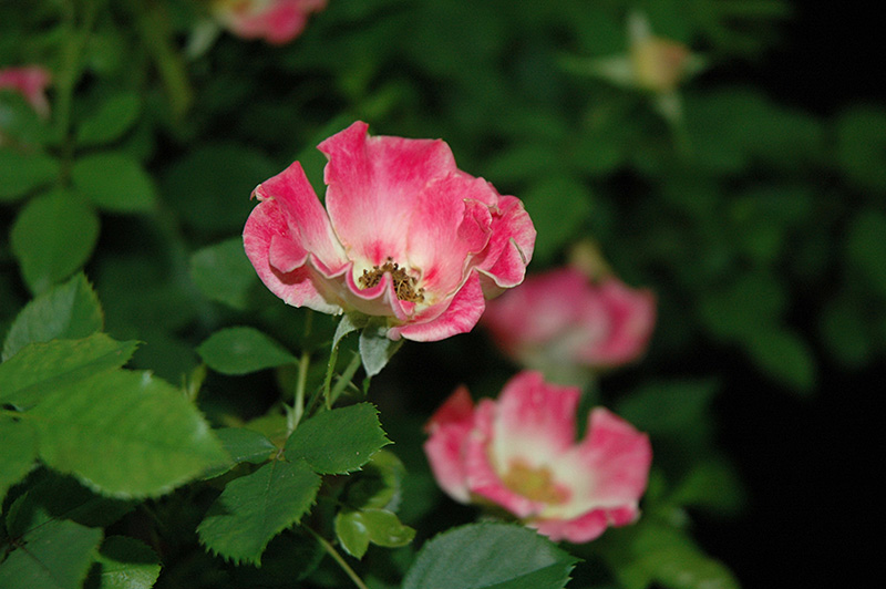 Hardiness Zone: 4b Group/Class: Sweet Spot Series Rose Description: A low growing, mounded variety with deep pink and white single blooms with yellow highlights; a dramatic color display that is excellent for smaller garden areas, groundcover and containers Ornamental Features Sweet Spot Calypso Rose is blanketed in stunning hot pink flowers with white streaks at the ends of the branches from mid spring to early fall. The flowers are excellent for cutting. It has dark green deciduous foliage. The small glossy oval compound leaves do not develop any appreciable fall color. Landscape Attributes Sweet Spot Calypso Rose is a multi-stemmed deciduous shrub with a mounded form. Its average texture blends into the landscape, but can be balanced by one or two finer or coarser trees or shrubs for an effective composition. This shrub will require occasional maintenance and upkeep, and is best pruned in late winter once the threat of extreme cold has passed. It is a good choice for attracting bees to your yard. It has no significant negative characteristics. Sweet Spot Calypso Rose is recommended for the following landscape applications; Planting & Growing Sweet Spot Calypso Rose will grow to be about 18 inches tall at maturity, with a spread of 24 inches. It tends to fill out right to the ground and therefore doesn't necessarily require facer plants in front. It grows at a fast rate, and under ideal conditions can be expected to live for approximately 30 years. This shrub should only be grown in full sunlight. It does best in average to evenly moist conditions, but will not tolerate standing water. It is not particular as to soil type or pH. It is highly tolerant of urban pollution and will even thrive in inner city environments. This particular variety is an interspecific hybrid. Sweet Spot Calypso Rose makes a fine choice for the outdoor landscape, but it is also well-suited for use in outdoor pots and containers. It is often used as a 'filler' in the 'spiller-thriller-filler' container combination, providing a mass of flowers against which the thriller plants stand out. Note that when grown in a container, it may not perform exactly as indicated on the tag - this is to be expected. Also note that when growing plants in outdoor containers and baskets, they may require more frequent waterings than they would in the yard or garden.