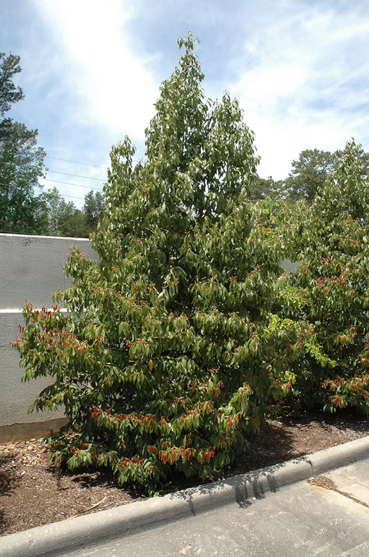 Hardiness Zone: 8a Other Names: Cinnamomum pendunculatum Description: This evergreen tree will eventually become quite large, producing reaching branches of glossy, aromatic green foliage that emerges in tones of crimson; will develop into an impressive landscape tree; plant away from structures Ornamental Features Japanese Cinnamon has attractive dark green evergreen foliage which emerges crimson in spring on a tree with an upright spreading habit of growth. The fragrant pointy leaves are highly ornamental and remain dark green throughout the winter. The fruits are showy black drupes displayed in mid spring. The fruit can be messy if allowed to drop on the lawn or walkways, and may require occasional clean-up. Landscape Attributes Japanese Cinnamon is an evergreen tree with an upright spreading habit of growth. Its average texture blends into the landscape, but can be balanced by one or two finer or coarser trees or shrubs for an effective composition. This is a relatively low maintenance tree, and should only be pruned after flowering to avoid removing any of the current season's flowers. Gardeners should be aware of the following characteristic(s) that may warrant special consideration; Japanese Cinnamon is recommended for the following landscape applications; Planting & Growing Japanese Cinnamon will grow to be about 50 feet tall at maturity, with a spread of 35 feet. It has a low canopy with a typical clearance of 3 feet from the ground, and should not be planted underneath power lines. It grows at a medium rate, and under ideal conditions can be expected to live to a ripe old age of 150 years or more; think of this as a heritage tree for future generations! This tree does best in full sun to partial shade. It prefers to grow in average to moist conditions, and shouldn't be allowed to dry out. It is particular about its soil conditions, with a strong preference for sandy, alkaline soils, and is able to handle environmental salt. It is highly tolerant of urban pollution and will even thrive in inner city environments. This species is not originally from North America, and parts of it are known to be toxic to humans and animals, so care should be exercised in planting it around children and pets.