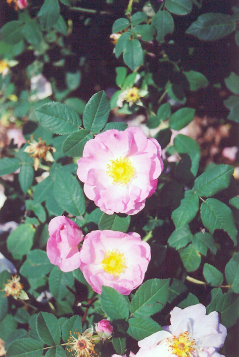Hardiness Zone: 4a Description: A pretty old-fashioned heirloom-type shrub rose, featuring showy semi-double pink flowers with bright yellow centers in early summer on a mounded form; needs full sun and very well-drained soil Ornamental Features St. Nicholas Damask Rose is clothed in stunning fragrant pink flowers at the ends of the branches in early summer. The flowers are excellent for cutting. It has green deciduous foliage. The oval compound leaves turn yellow in fall. Landscape Attributes St. Nicholas Damask Rose is a multi-stemmed deciduous shrub with a more or less rounded form. Its average texture blends into the landscape, but can be balanced by one or two finer or coarser trees or shrubs for an effective composition. This is a high maintenance shrub that will require regular care and upkeep, and is best pruned in late winter once the threat of extreme cold has passed. It is a good choice for attracting bees to your yard. Gardeners should be aware of the following characteristic(s) that may warrant special consideration; St. Nicholas Damask Rose is recommended for the following landscape applications; Planting & Growing St. Nicholas Damask Rose will grow to be about 5 feet tall at maturity, with a spread of 5 feet. It tends to fill out right to the ground and therefore doesn't necessarily require facer plants in front, and is suitable for planting under power lines. It grows at a medium rate, and under ideal conditions can be expected to live for approximately 20 years. This shrub should only be grown in full sunlight. It does best in average to evenly moist conditions, but will not tolerate standing water. It is not particular as to soil type or pH. It is highly tolerant of urban pollution and will even thrive in inner city environments. This particular variety is an interspecific hybrid.