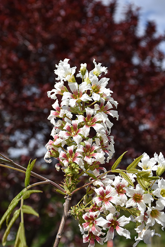 Hardiness Zone: 4a Description: Possibly the most undervalued of all ornamental plants, this beautiful shrub features masses of stunning white tubular flowers in spring with a yellow blotch in the center that fades to red, compound leaves give an airy appearance; somewhat slow growing Ornamental Features Yellowhorn is covered in stunning racemes of white trumpet-shaped flowers with yellow throats and antique red centers rising above the foliage in mid spring before the leaves. It has dark green deciduous foliage. The narrow pinnately compound leaves do not develop any appreciable fall color. It produces brown nuts from early to mid fall. Landscape Attributes Yellowhorn is a multi-stemmed deciduous shrub with an upright spreading habit of growth. Its relatively fine texture sets it apart from other landscape plants with less refined foliage. This is a relatively low maintenance shrub, and should not require much pruning, except when necessary, such as to remove dieback. It is a good choice for attracting squirrels to your yard. It has no significant negative characteristics. Yellowhorn is recommended for the following landscape applications; Planting & Growing Yellowhorn will grow to be about 15 feet tall at maturity, with a spread of 12 feet. It tends to be a little leggy, with a typical clearance of 2 feet from the ground, and is suitable for planting under power lines. It grows at a slow rate, and under ideal conditions can be expected to live for 50 years or more. This shrub should only be grown in full sunlight. It is very adaptable to both dry and moist locations, and should do just fine under average home landscape conditions. It is not particular as to soil type or pH. It is somewhat tolerant of urban pollution. This species is not originally from North America.