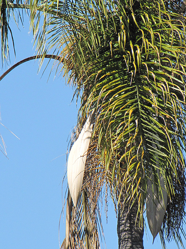 Hardiness Zone: 9a Other Names: syn. Cocos plumosa, Cocos Palm Description: This variety is a popular feather-leaved variety with gracefully arching leaves; hardiest of the tropical looking palms; tolerates drought and salt spray, adapts to a wide variety of soils; an excellent accent tree Ornamental Features Queen Palm features showy panicles of creamy white flowers held atop the branches in mid summer. It has attractive dark green evergreen foliage. The narrow pinnately compound leaves are highly ornamental and remain dark green throughout the winter. The fruits are showy orange drupes carried in abundance from late summer to early fall. The fruit can be messy if allowed to drop on the lawn or walkways, and may require occasional clean-up. Landscape Attributes Queen Palm is an evergreen tree with a strong central leader and a towering form, with a high canopy of foliage concentrated at the top of the plant. It lends an extremely fine and delicate texture to the landscape composition which can make it a great accent feature on this basis alone. This is a high maintenance tree that will require regular care and upkeep, and is best pruned in late winter once the threat of extreme cold has passed. It is a good choice for attracting birds to your yard. It has no significant negative characteristics. Queen Palm is recommended for the following landscape applications; Planting & Growing Queen Palm will grow to be about 50 feet tall at maturity, with a spread of 25 feet. It has a high canopy of foliage that sits well above the ground, and should not be planted underneath power lines. As it matures, the lower branches of this tree can be strategically removed to create a high enough canopy to support unobstructed human traffic underneath. It grows at a slow rate, and under ideal conditions can be expected to live for 50 years or more. This tree does best in full sun to partial shade. It prefers to grow in average to moist conditions, and shouldn't be allowed to dry out. It is not particular as to soil type or pH, and is able to handle environmental salt. It is highly tolerant of urban pollution and will even thrive in inner city environments. This species is not originally from North America. Queen Palm is a fine choice for the yard, but it is also a good selection for planting in outdoor pots and containers. Because of its height, it is often used as a 'thriller' in the 'spiller-thriller-filler' container combination; plant it near the center of the pot, surrounded by smaller plants and those that spill over the edges. It is even sizeable enough that it can be grown alone in a suitable container. Note that when grown in a container, it may not perform exactly as indicated on the tag - this is to be expected. Also note that when growing plants in outdoor containers and baskets, they may require more frequent waterings than they would in the yard or garden.