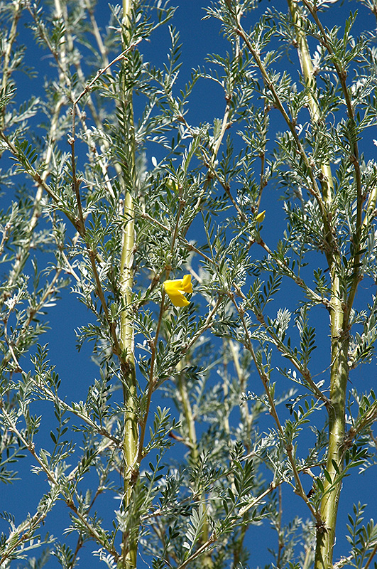 Hardiness Zone: 3a Other Names: Mongolian Peashrub, Caragana Description: A fine specimen planting for very harsh or dry locations; tiny, sparkling silver leaves and an upright arching habit; yellow flowers in spring, followed by narrow red seed pods; perfect for a garden composition or foundation planting Ornamental Features Mongolian Silver Spires Littleleaf Peashrub features showy yellow pea-like flowers along the branches in mid spring. It has silver foliage with green undersides. The tiny ferny pinnately compound leaves turn gold in fall. The fruits are showy dark red pods displayed in mid summer. The smooth olive green bark adds an interesting dimension to the landscape. Landscape Attributes Mongolian Silver Spires Littleleaf Peashrub is an open multi-stemmed deciduous shrub with an upright spreading habit of growth. It lends an extremely fine and delicate texture to the landscape composition which can make it a great accent feature on this basis alone. This shrub will require occasional maintenance and upkeep, and can be pruned at anytime. Deer don't particularly care for this plant and will usually leave it alone in favor of tastier treats. Gardeners should be aware of the following characteristic(s) that may warrant special consideration; Mongolian Silver Spires Littleleaf Peashrub is recommended for the following landscape applications; Planting & Growing Mongolian Silver Spires Littleleaf Peashrub will grow to be about 10 feet tall at maturity, with a spread of 5 feet. It tends to be a little leggy, with a typical clearance of 3 feet from the ground, and is suitable for planting under power lines. It grows at a medium rate, and under ideal conditions can be expected to live for approximately 30 years. This shrub does best in full sun to partial shade. It prefers dry to average moisture levels with very well-drained soil, and will often die in standing water. It is considered to be drought-tolerant, and thus makes an ideal choice for xeriscaping or the moisture-conserving landscape. It is not particular as to soil type or pH, and is able to handle environmental salt. It is highly tolerant of urban pollution and will even thrive in inner city environments. This is a selected variety of a species not originally from North America.