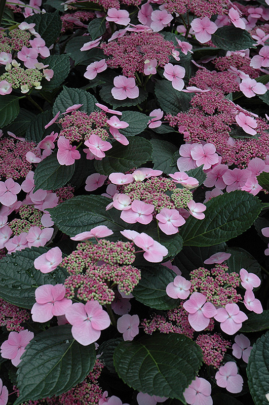 Hardiness Zone: 5b Other Names: French Hydrangea, Bigleaf Hydrangea Description: One of the showiest summer-blooming garden plants with dainty rose-pink and white lacecap flowers, over somewhat coarse leaves; red-purple fall color; blooms on old wood so protecting flower buds in winter may be necessary Ornamental Features Tokyo Delight Hydrangea features bold rose lacecap flowers with white overtones at the ends of the branches from mid summer to early fall. The flowers are excellent for cutting. It has forest green deciduous foliage. The large glossy pointy leaves turn red in fall. Landscape Attributes Tokyo Delight Hydrangea is a multi-stemmed deciduous shrub with a more or less rounded form. Its relatively coarse texture can be used to stand it apart from other landscape plants with finer foliage. This shrub will require occasional maintenance and upkeep, and should only be pruned after flowering to avoid removing any of the current season's flowers. It has no significant negative characteristics. Tokyo Delight Hydrangea is recommended for the following landscape applications; Planting & Growing Tokyo Delight Hydrangea will grow to be about 5 feet tall at maturity, with a spread of 5 feet. It tends to be a little leggy, with a typical clearance of 1 foot from the ground, and is suitable for planting under power lines. It grows at a fast rate, and under ideal conditions can be expected to live for approximately 20 years. This shrub does best in full sun to partial shade. You may want to keep it away from hot, dry locations that receive direct afternoon sun or which get reflected sunlight, such as against the south side of a white wall. It requires an evenly moist well-drained soil for optimal growth. It is not particular as to soil type or pH. It is highly tolerant of urban pollution and will even thrive in inner city environments, and will benefit from being planted in a relatively sheltered location. Consider applying a thick mulch around the root zone in both summer and winter to conserve soil moisture and protect it in exposed locations or colder microclimates. This is a selected variety of a species not originally from North America. Tokyo Delight Hydrangea makes a fine choice for the outdoor landscape, but it is also well-suited for use in outdoor pots and containers. Because of its height, it is often used as a 'thriller' in the 'spiller-thriller-filler' container combination; plant it near the center of the pot, surrounded by smaller plants and those that spill over the edges. It is even sizeable enough that it can be grown alone in a suitable container. Note that when grown in a container, it may not perform exactly as indicated on the tag - this is to be expected. Also note that when growing plants in outdoor containers and baskets, they may require more frequent waterings than they would in the yard or garden.