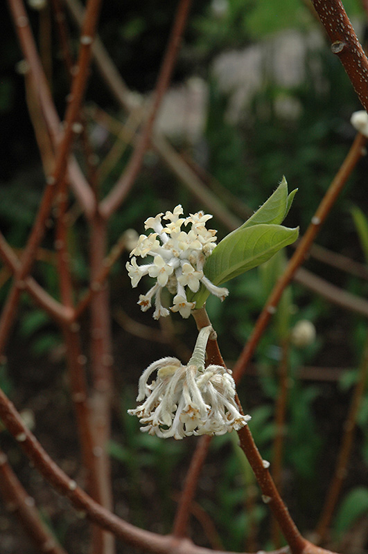 Hardiness Zone: 6b Other Names: Mitsumata Paper Plant Description: The foliage on this variety is attractive, but it is primarily grown for its flowers; blooms are fragrant and open in late winter; yellow and white trumpets that are almost tubular, in dense clusters create an exotic look as a garden accent Ornamental Features Oriental Paper Bush has masses of beautiful clusters of fragrant white trumpet-shaped flowers with yellow throats at the ends of the branches in late winter before the leaves, which are most effective when planted in groupings. It has attractive dark green deciduous foliage. The narrow leaves are highly ornamental but do not develop any appreciable fall color. The coppery-bronze bark and brick red branches add an interesting dimension to the landscape. Landscape Attributes Oriental Paper Bush is a multi-stemmed deciduous shrub with a mounded form. Its average texture blends into the landscape, but can be balanced by one or two finer or coarser trees or shrubs for an effective composition. This is a relatively low maintenance shrub, and should only be pruned after flowering to avoid removing any of the current season's flowers. Gardeners should be aware of the following characteristic(s) that may warrant special consideration; Oriental Paper Bush is recommended for the following landscape applications; Planting & Growing Oriental Paper Bush will grow to be about 7 feet tall at maturity, with a spread of 7 feet. It has a low canopy, and is suitable for planting under power lines. It grows at a medium rate, and under ideal conditions can be expected to live for 50 years or more. This shrub does best in full sun to partial shade. It prefers to grow in average to moist conditions, and shouldn't be allowed to dry out. It is not particular as to soil pH, but grows best in rich soils. It is somewhat tolerant of urban pollution. This species is not originally from North America.