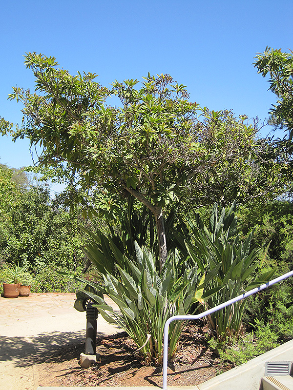 Hardiness Zone: 8b Description: A beautiful evergreen tree with coppery-red new foliage that persists for some time before turning dark green and glossy; fragrant white flowers in spring; fruits are not appetizing; an excellent, rare accent tree that also does well in containers Ornamental Features Bronze Loquat is clothed in stunning panicles of fragrant white star-shaped flowers with tan eyes at the ends of the branches in mid spring. It has attractive dark green evergreen foliage which emerges coppery-bronze in spring. The glossy oval leaves are highly ornamental and remain dark green throughout the winter. The smooth gray bark adds an interesting dimension to the landscape. Landscape Attributes Bronze Loquat is a multi-stemmed evergreen tree with an upright spreading habit of growth. Its average texture blends into the landscape, but can be balanced by one or two finer or coarser trees or shrubs for an effective composition. This tree will require occasional maintenance and upkeep, and should only be pruned after flowering to avoid removing any of the current season's flowers. It is a good choice for attracting birds and bees to your yard. It has no significant negative characteristics. Bronze Loquat is recommended for the following landscape applications; Planting & Growing Bronze Loquat will grow to be about 20 feet tall at maturity, with a spread of 15 feet. It has a low canopy with a typical clearance of 2 feet from the ground, and is suitable for planting under power lines. It grows at a medium rate, and under ideal conditions can be expected to live for 50 years or more. This tree does best in full sun to partial shade. It is very adaptable to both dry and moist growing conditions, but will not tolerate any standing water. It is not particular as to soil type or pH, and is able to handle environmental salt. It is somewhat tolerant of urban pollution. Consider applying a thick mulch around the root zone in winter to protect it in exposed locations or colder microclimates. This species is not originally from North America. Bronze Loquat is a fine choice for the yard, but it is also a good selection for planting in outdoor pots and containers. Its large size and upright habit of growth lend it for use as a solitary accent, or in a composition surrounded by smaller plants around the base and those that spill over the edges. It is even sizeable enough that it can be grown alone in a suitable container. Note that when grown in a container, it may not perform exactly as indicated on the tag - this is to be expected. Also note that when growing plants in outdoor containers and baskets, they may require more frequent waterings than they would in the yard or garden.