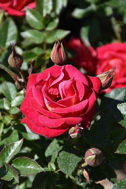 Hardiness Zone: 4a Group/Class: Miniature Rose Description: Exciting deep pink blooms emerge from red buds, and each petal has a touch of luminous yellow at the base; dark green foliage provides excellent contrast; great for smaller garden areas, containers, or as groundcover Ornamental Features Be My Baby Rose features showy lightly-scented double hot pink flowers with gold eyes and a yellow ring at the ends of the branches from late spring to early fall, which emerge from distinctive red flower buds. The flowers are excellent for cutting. It has dark green deciduous foliage. The glossy oval compound leaves turn yellow in fall. Landscape Attributes Be My Baby Rose is a multi-stemmed deciduous shrub with an upright spreading habit of growth. Its average texture blends into the landscape, but can be balanced by one or two finer or coarser trees or shrubs for an effective composition. This shrub will require occasional maintenance and upkeep, and is best pruned in late winter once the threat of extreme cold has passed. It is a good choice for attracting bees to your yard. Gardeners should be aware of the following characteristic(s) that may warrant special consideration; Be My Baby Rose is recommended for the following landscape applications; Planting & Growing Be My Baby Rose will grow to be about 30 inches tall at maturity, with a spread of 24 inches. It tends to fill out right to the ground and therefore doesn't necessarily require facer plants in front. It grows at a fast rate, and under ideal conditions can be expected to live for approximately 30 years. This shrub should only be grown in full sunlight. It does best in average to evenly moist conditions, but will not tolerate standing water. It is not particular as to soil type or pH. It is highly tolerant of urban pollution and will even thrive in inner city environments. This particular variety is an interspecific hybrid.