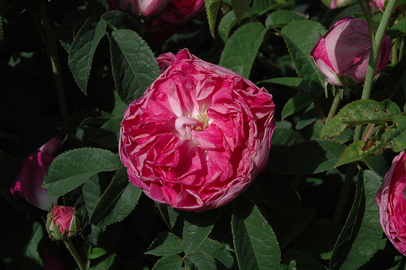 Hardiness Zone: 4a Group/Class: Old-Fashioned Shrub Rose Description: A vigorous variety with showy crimson, fully double blooms that develop pink-purple tints as they age; lovely in containers or as a bedding plant Ornamental Features Charles De Mills Rose features showy lightly-scented fully double crimson flowers with hot pink overtones and gold eyes at the ends of the branches from early to late summer. The flowers are excellent for cutting. It has dark green deciduous foliage. The serrated oval compound leaves turn yellow in fall. The fruits are showy red hips displayed from mid to late fall. The spiny brick red bark adds an interesting dimension to the landscape. Landscape Attributes Charles De Mills Rose is a multi-stemmed deciduous shrub with an upright spreading habit of growth. Its average texture blends into the landscape, but can be balanced by one or two finer or coarser trees or shrubs for an effective composition. This is a high maintenance shrub that will require regular care and upkeep, and is best pruned in late winter once the threat of extreme cold has passed. Gardeners should be aware of the following characteristic(s) that may warrant special consideration; Charles De Mills Rose is recommended for the following landscape applications; Planting & Growing Charles De Mills Rose will grow to be about 5 feet tall at maturity, with a spread of 4 feet. It tends to fill out right to the ground and therefore doesn't necessarily require facer plants in front, and is suitable for planting under power lines. It grows at a fast rate, and under ideal conditions can be expected to live for approximately 20 years. This shrub should only be grown in full sunlight. It does best in average to evenly moist conditions, but will not tolerate standing water. It is not particular as to soil type or pH. It is somewhat tolerant of urban pollution. This particular variety is an interspecific hybrid.
