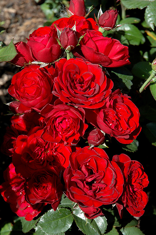 Hardiness Zone: 4a Other Names: Syn. Intrigue Rose, Lava Glow Rose Group/Class: Floribunda Rose Description: Bushy and spreading in form, this floribunda rose produces velvety red blooms with plum highlights, creating tremendous visual impact when massed in the garden; blooms repeat all season long; requires spring freeze protection Ornamental Features Lavaglut Rose features showy double red flowers at the ends of the branches from mid spring to mid fall, which emerge from distinctive plum purple flower buds. The flowers are excellent for cutting. It has dark green deciduous foliage. The glossy oval compound leaves do not develop any appreciable fall color. Landscape Attributes Lavaglut Rose is a multi-stemmed deciduous shrub with an upright spreading habit of growth. Its average texture blends into the landscape, but can be balanced by one or two finer or coarser trees or shrubs for an effective composition. This is a high maintenance shrub that will require regular care and upkeep, and is best pruned in late winter once the threat of extreme cold has passed. It is a good choice for attracting bees to your yard. Gardeners should be aware of the following characteristic(s) that may warrant special consideration; Lavaglut Rose is recommended for the following landscape applications; Planting & Growing Lavaglut Rose will grow to be about 3 feet tall at maturity, with a spread of 4 feet. It tends to fill out right to the ground and therefore doesn't necessarily require facer plants in front. It grows at a fast rate, and under ideal conditions can be expected to live for approximately 30 years. This shrub should only be grown in full sunlight. It does best in average to evenly moist conditions, but will not tolerate standing water. It is not particular as to soil type or pH. It is highly tolerant of urban pollution and will even thrive in inner city environments. This particular variety is an interspecific hybrid.