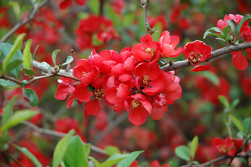 Knap Hill Scarlet Flowering Quince Chaenomeles x superba 'Knap Hill Scarlet' Height: 5 feet Spread: 6 feet