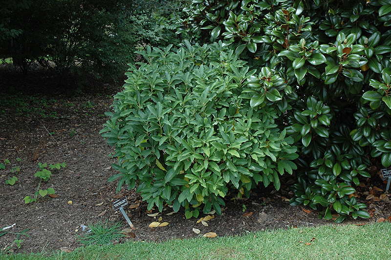 Hardiness Zone: 6b Description: An interesting shrub for shady areas of the garden, or as an understory plant in a wooded area; great for containers in shady patio areas Ornamental Features Daphniphyllum has emerald green deciduous foliage on a plant with a round habit of growth. The narrow leaves turn yellow in fall. The fruits are showy black drupes displayed in mid summer. Landscape Attributes Daphniphyllum is a multi-stemmed deciduous shrub with a more or less rounded form. Its average texture blends into the landscape, but can be balanced by one or two finer or coarser trees or shrubs for an effective composition. This is a relatively low maintenance shrub, and should only be pruned after flowering to avoid removing any of the current season's flowers. Deer don't particularly care for this plant and will usually leave it alone in favor of tastier treats. It has no significant negative characteristics. Daphniphyllum is recommended for the following landscape applications; Planting & Growing Daphniphyllum will grow to be about 4 feet tall at maturity, with a spread of 6 feet. It has a low canopy. It grows at a slow rate, and under ideal conditions can be expected to live for approximately 30 years. This shrub does best in partial shade to shade. It does best in average to evenly moist conditions, but will not tolerate standing water. It is not particular as to soil pH, but grows best in rich soils. It is somewhat tolerant of urban pollution, and will benefit from being planted in a relatively sheltered location. Consider applying a thick mulch around the root zone in winter to protect it in exposed locations or colder microclimates. This species is not originally from North America. Daphniphyllum makes a fine choice for the outdoor landscape, but it is also well-suited for use in outdoor pots and containers. Because of its height, it is often used as a 'thriller' in the 'spiller-thriller-filler' container combination; plant it near the center of the pot, surrounded by smaller plants and those that spill over the edges. It is even sizeable enough that it can be grown alone in a suitable container. Note that when grown in a container, it may not perform exactly as indicated on the tag - this is to be expected. Also note that when growing plants in outdoor containers and baskets, they may require more frequent waterings than they would in the yard or garden.
