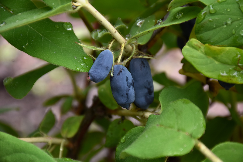 Hardiness Zone: 2a Other Names: Sweetberry Honeysuckle, Haskap Group/Class: Indigo Series Description: An interesting hardy shrub with clean foliage and delicious bluish-purple berries that are edible; dense and fairly compact growing habit; selected for larger fruit and high yeilds, must have another honeyberry variety for cross pollination Edible Qualities Indigo Yum Honeyberry is a medium-sized shrub that is typically grown for its edible qualities, although it does have ornamental merits as well. It produces blue round berries which are usually ready for picking from late spring to early summer. The berries have a sweet taste. The berries are most often used in the following ways: Features & Attributes Indigo Yum Honeyberry features subtle creamy white tubular flowers along the branches in early spring. It has green deciduous foliage. The narrow leaves do not develop any appreciable fall color. It features an abundance of magnificent blue berries in late spring. This is a dense multi-stemmed deciduous shrub with a more or less rounded form. Its average texture blends into the landscape, but can be balanced by one or two finer or coarser trees or shrubs for an effective composition. This plant will require occasional maintenance and upkeep, and is best pruned in late winter once the threat of extreme cold has passed. It is a good choice for attracting butterflies to your yard. It has no significant negative characteristics. Aside from its primary use as an edible, Indigo Yum Honeyberry is sutiable for the following landscape applications; Planting & Growing Indigo Yum Honeyberry will grow to be about 5 feet tall at maturity, with a spread of 4 feet. It tends to fill out right to the ground and therefore doesn't necessarily require facer plants in front, and is suitable for planting under power lines. It grows at a medium rate, and under ideal conditions can be expected to live for approximately 20 years. While it is considered to be somewhat self-pollinating, it tends to set heavier quantities of fruit with a different variety of the same species growing nearby. This shrub is quite ornamental as well as edible, and is as much at home in a landscape or flower garden as it is in a designated edibles garden. It does best in full sun to partial shade. It prefers dry to average moisture levels with very well-drained soil, and will often die in standing water. It is not particular as to soil type or pH. It is highly tolerant of urban pollution and will even thrive in inner city environments. This is a selected variety of a species not originally from North America.